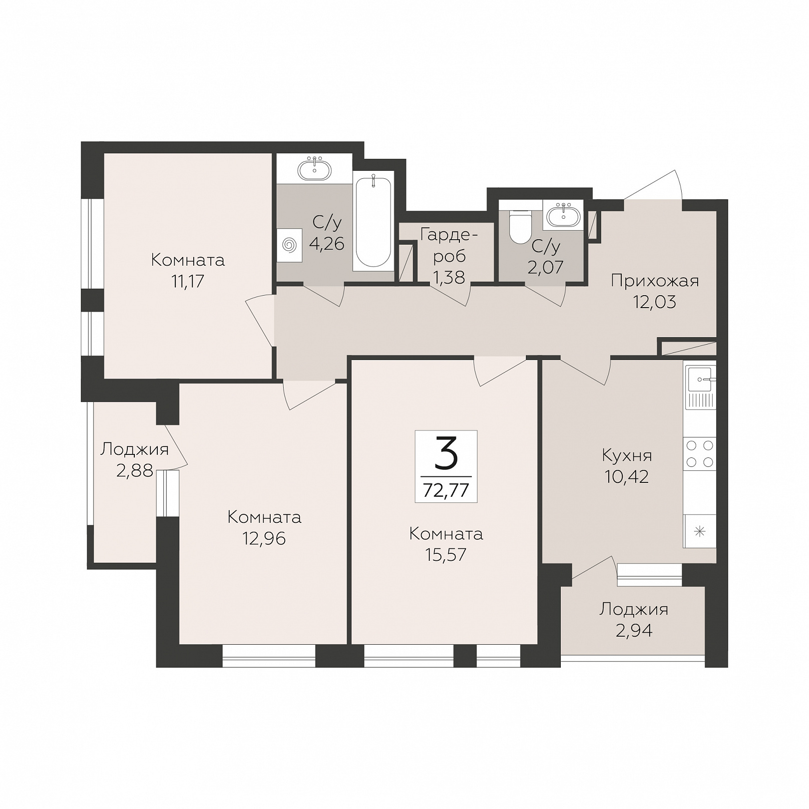 3‑комнатная