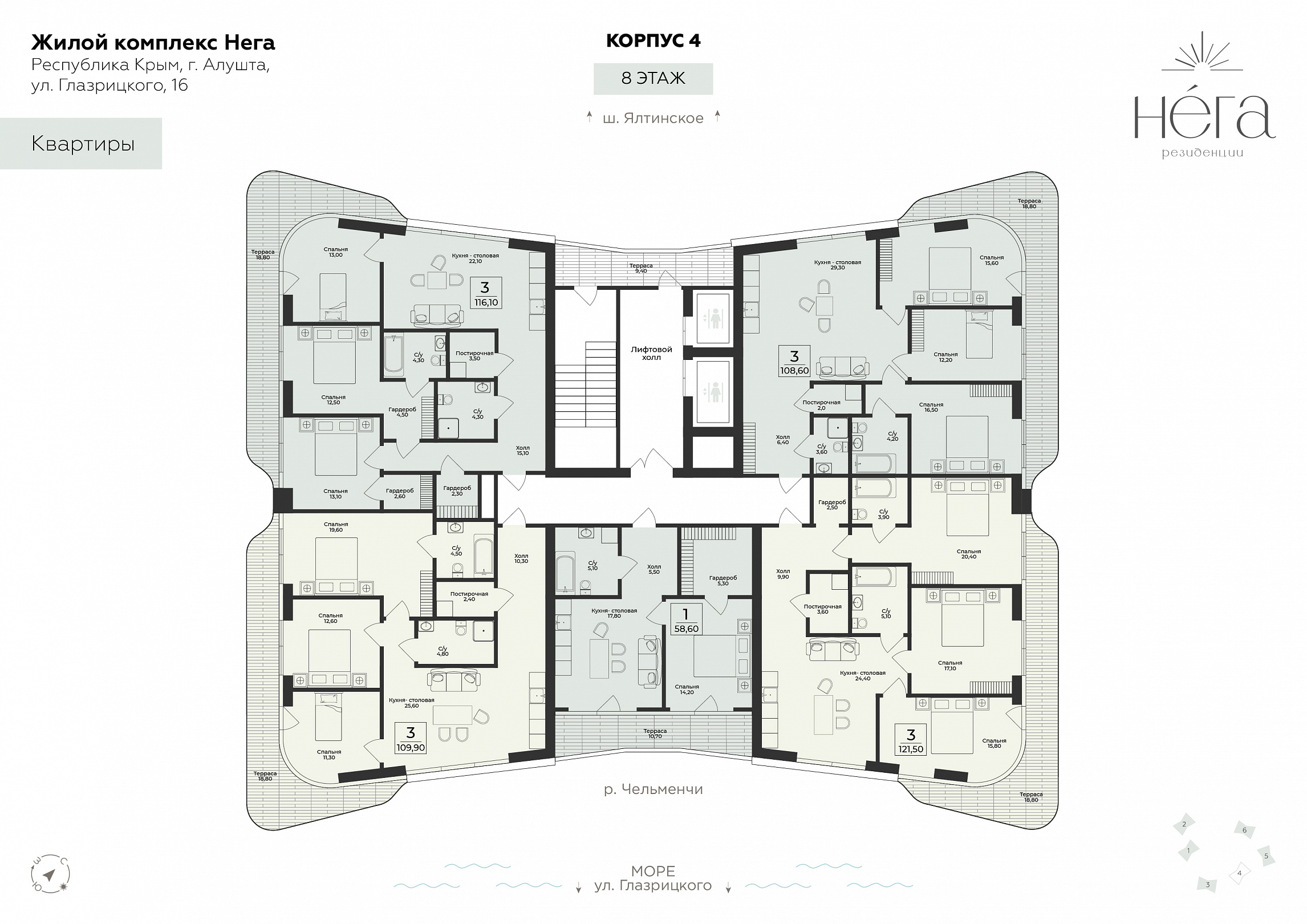 4 (Алушта, ул. Глазкрицкого) секция, 8 этаж