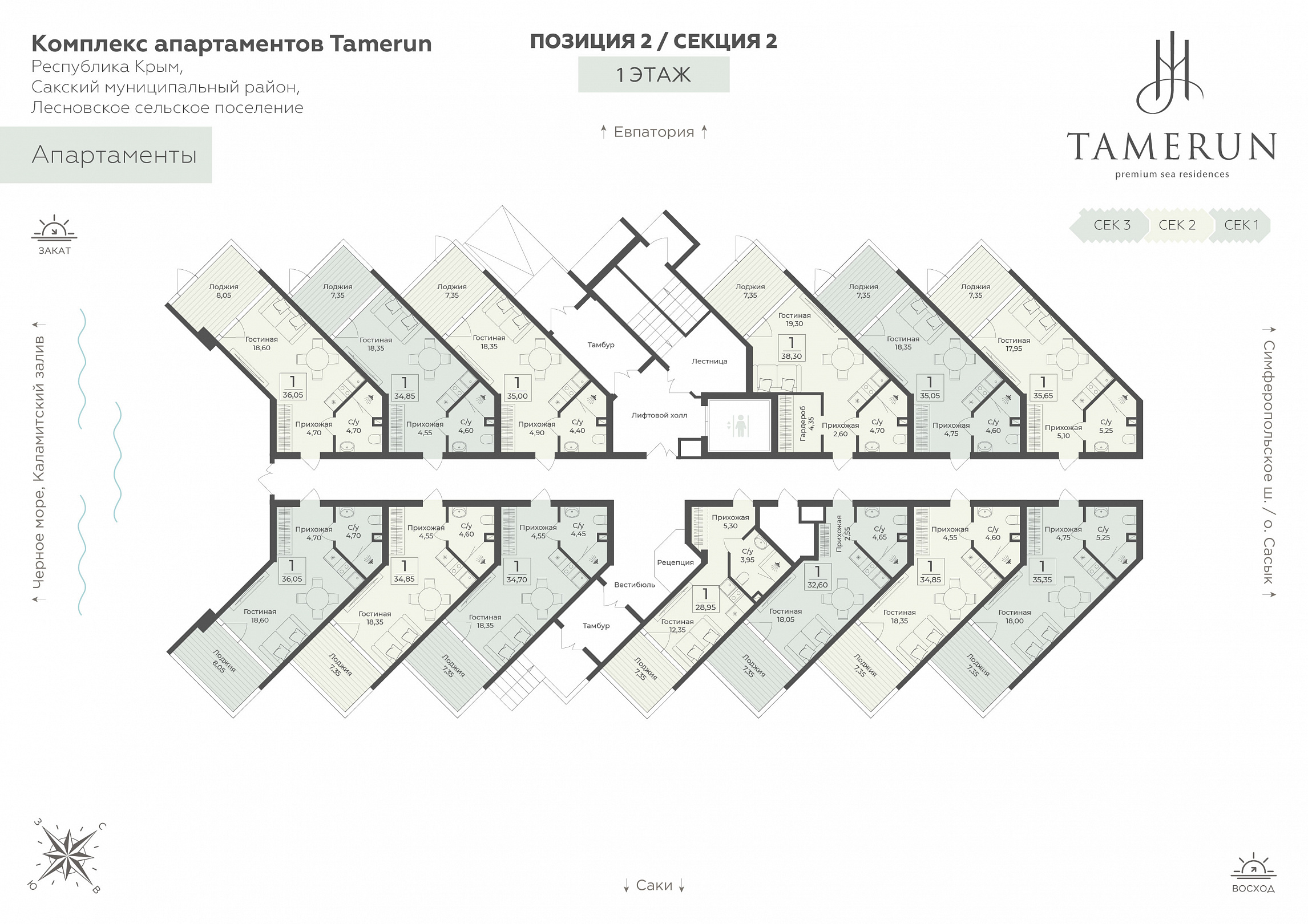 Позиция 2, Секция 1 (Саки, ул. Набережная / ш. Симферопольское) секция, 7 этаж