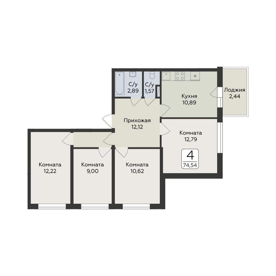 4-комнатная квартира, 74.54 м2, 8 этаж, №43, Панорама Юкки