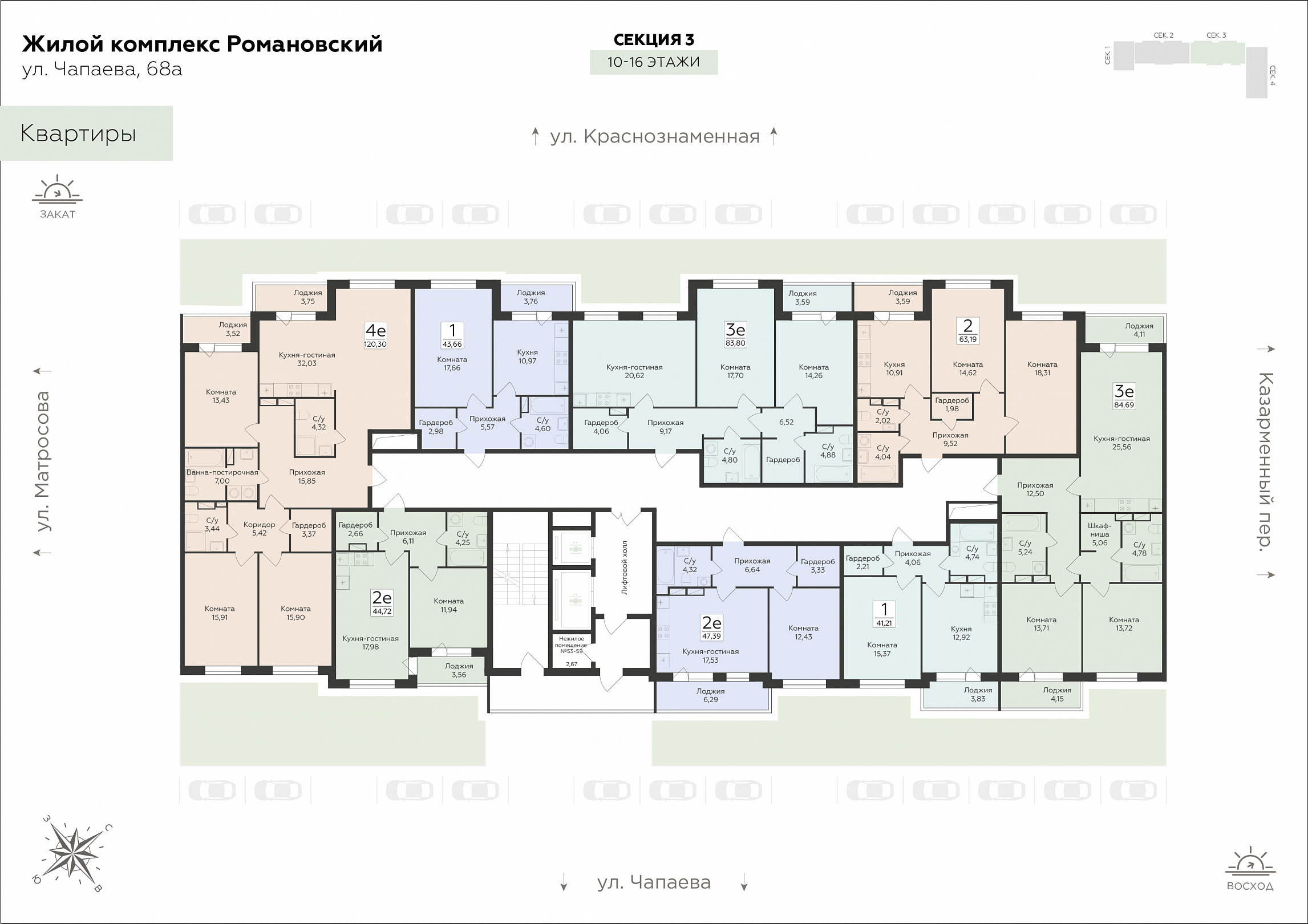 2-ком. квартира (Евро), 44.72 м2, 10 этаж, №292, Романовский