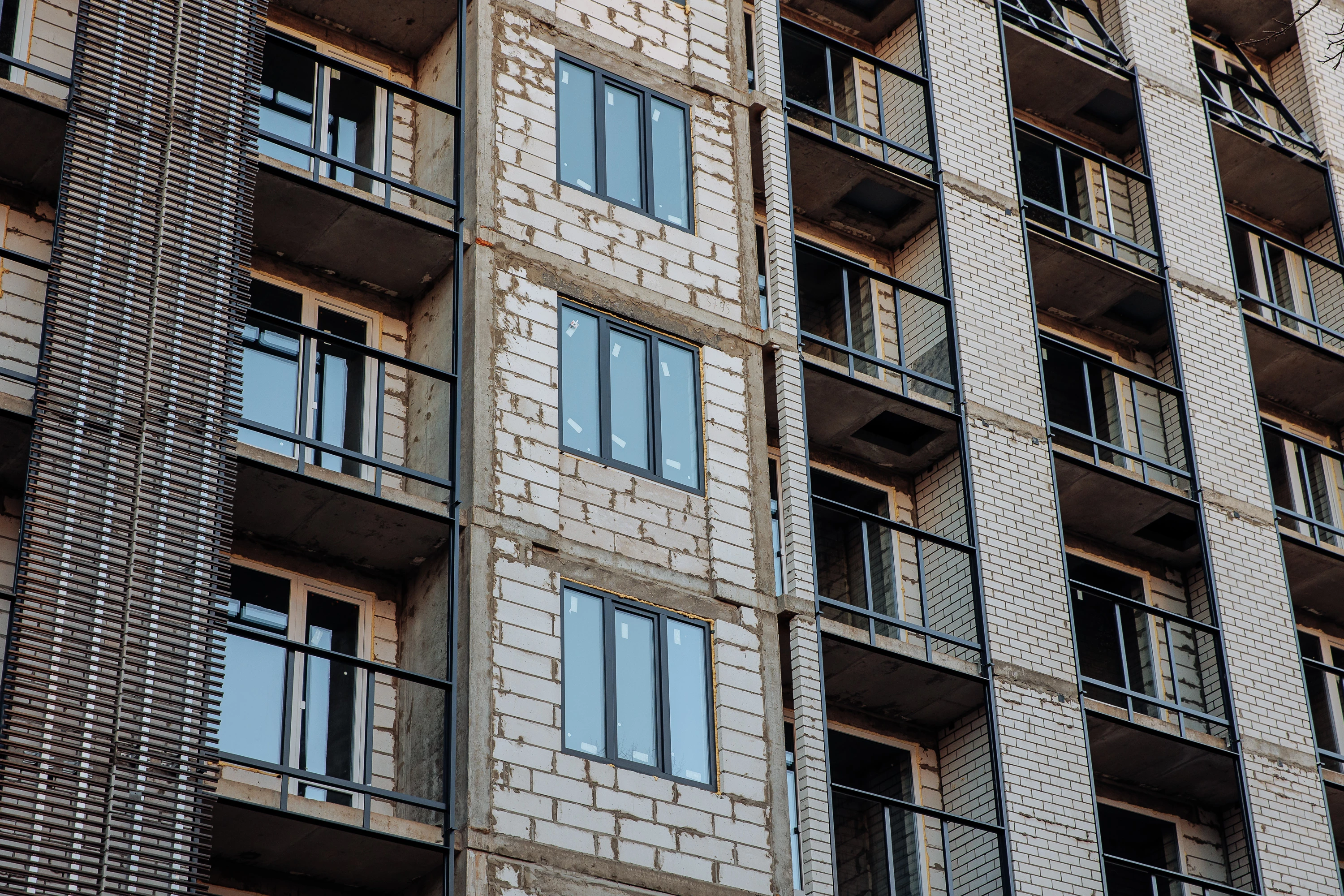 - Витражное остекление балконов, готовность 50%.