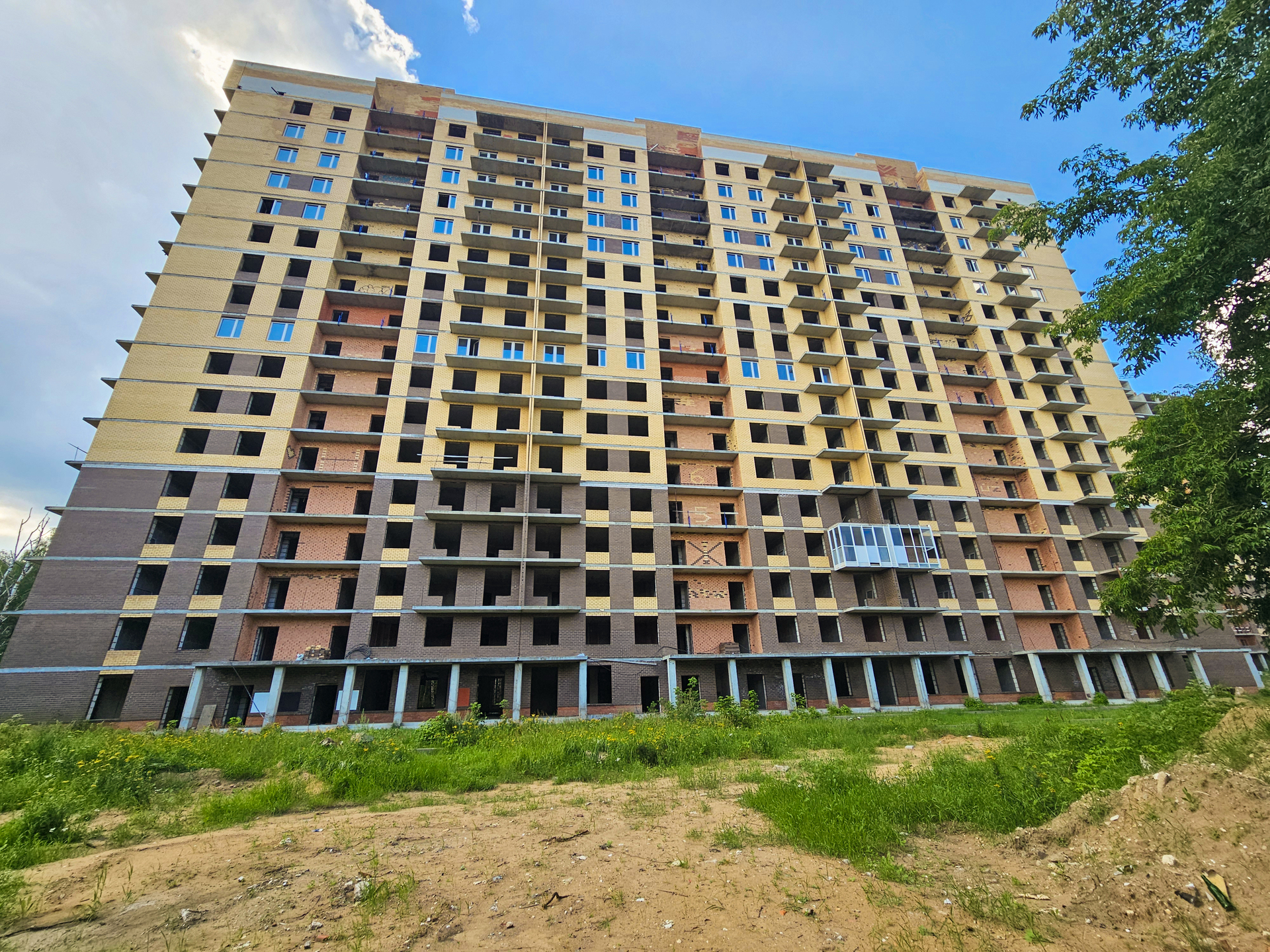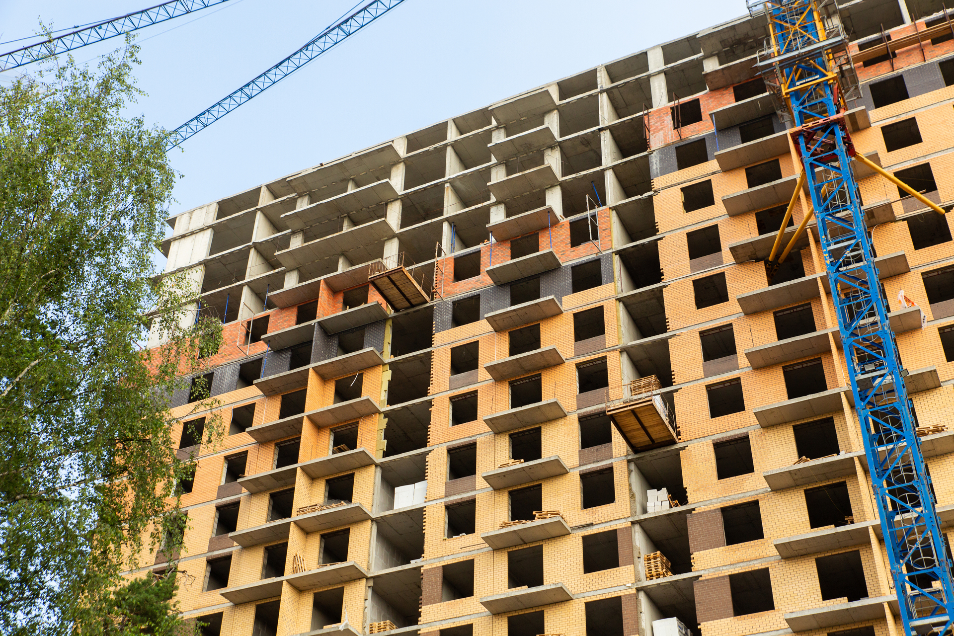 Ведутся работы по лицевой кладке наружных стен в корпусе 202