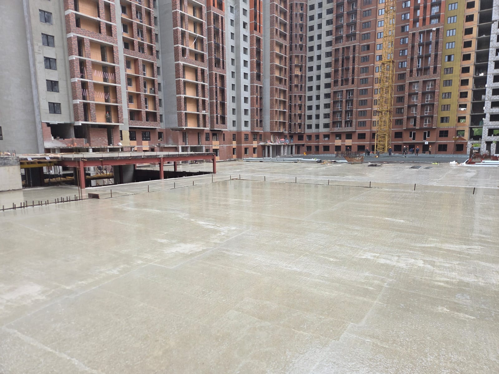 - Ведется заливка плиты покрытия подземного паркинга (центральная часть)