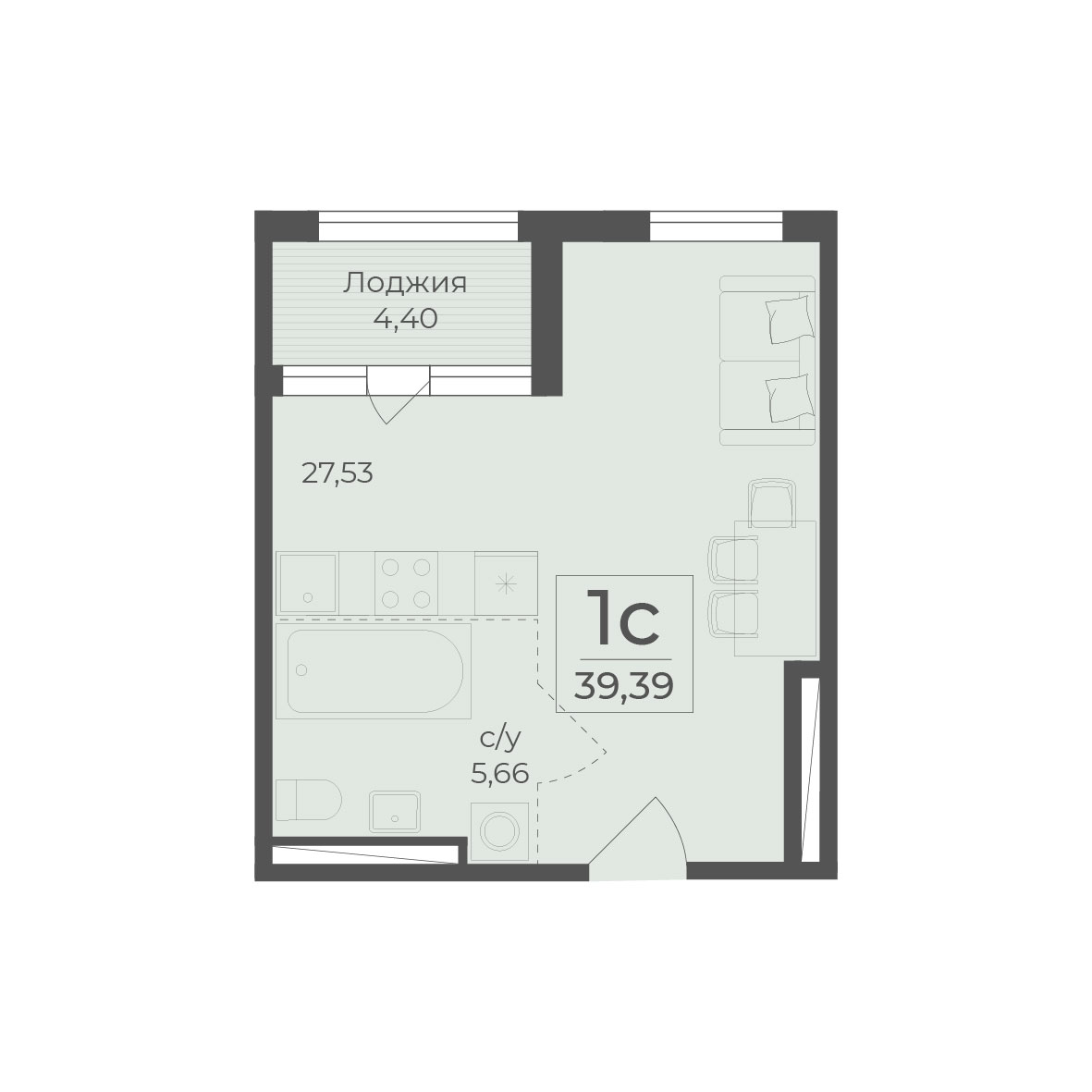 • 1-комнатная (студия) от 14,1 млн ₽