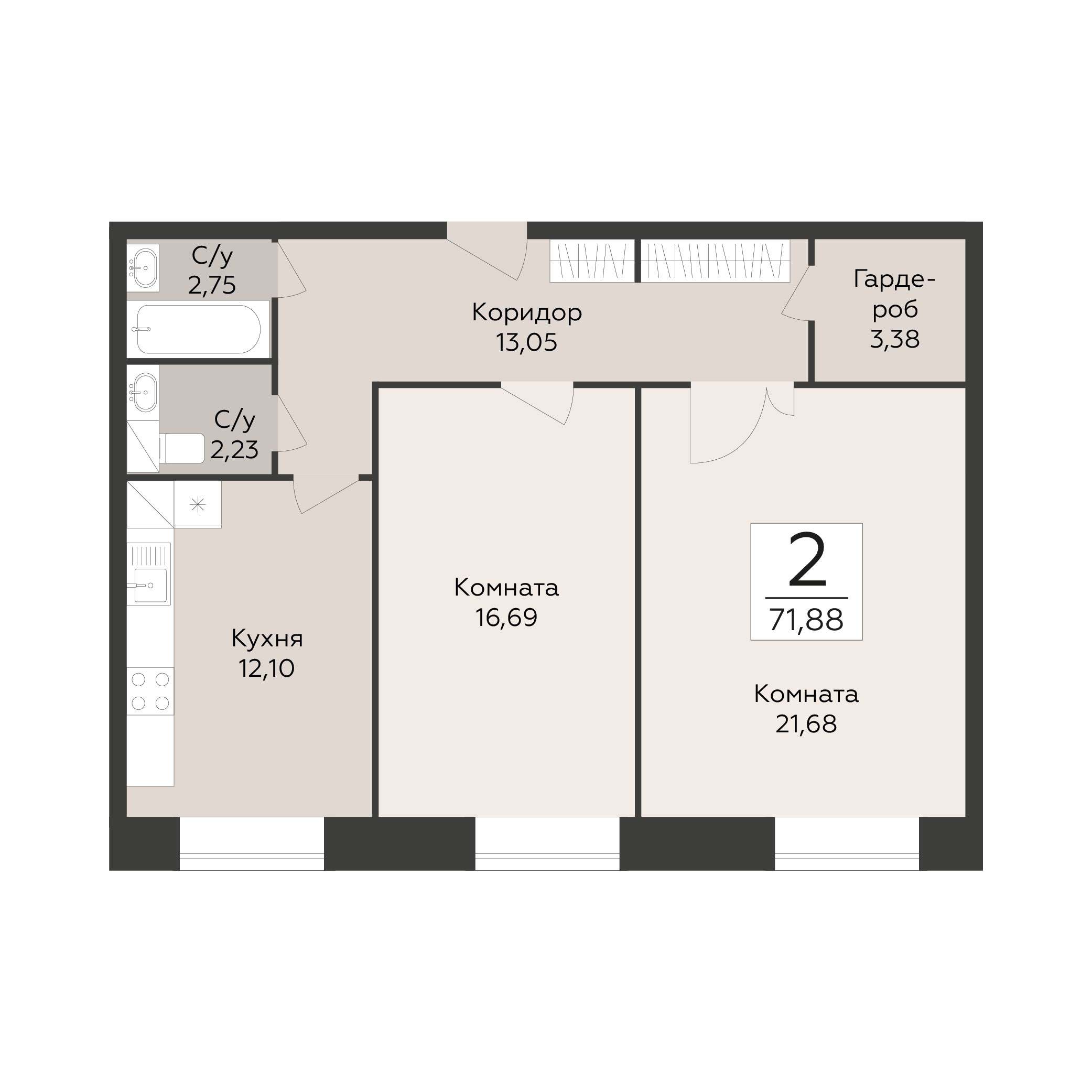 • 2-комнатная квартира от 9,9 млн ₽