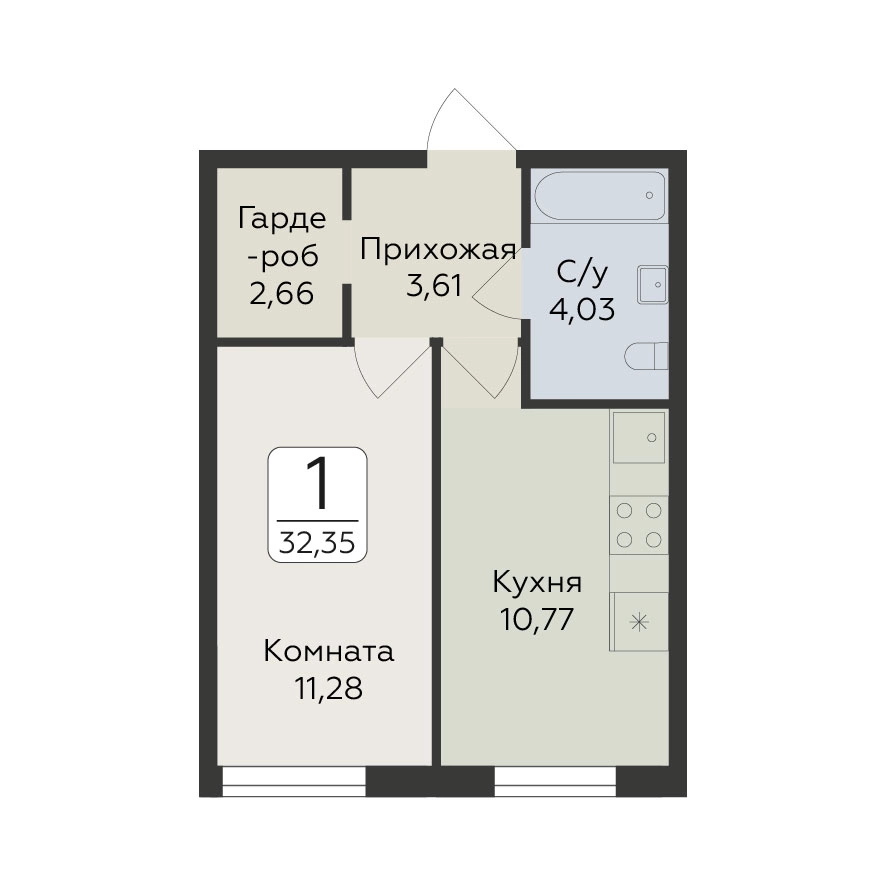 - Покрытие пола в комнатах, коридоре и кухне исполнено линолеумом светлых тонов с текстурой имитирующей дерево