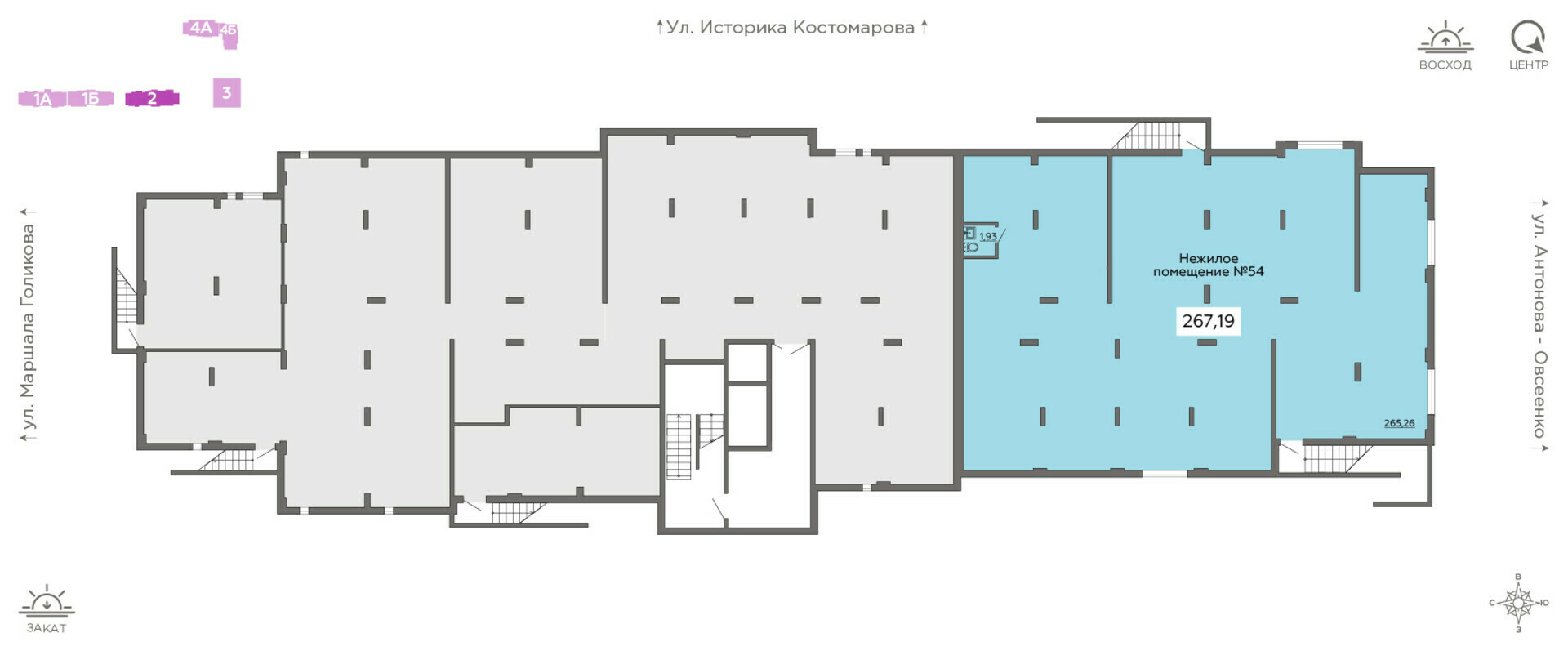 Коммерческое помещение, 267.19 м2, -1 этаж, №54, Галактика 2
