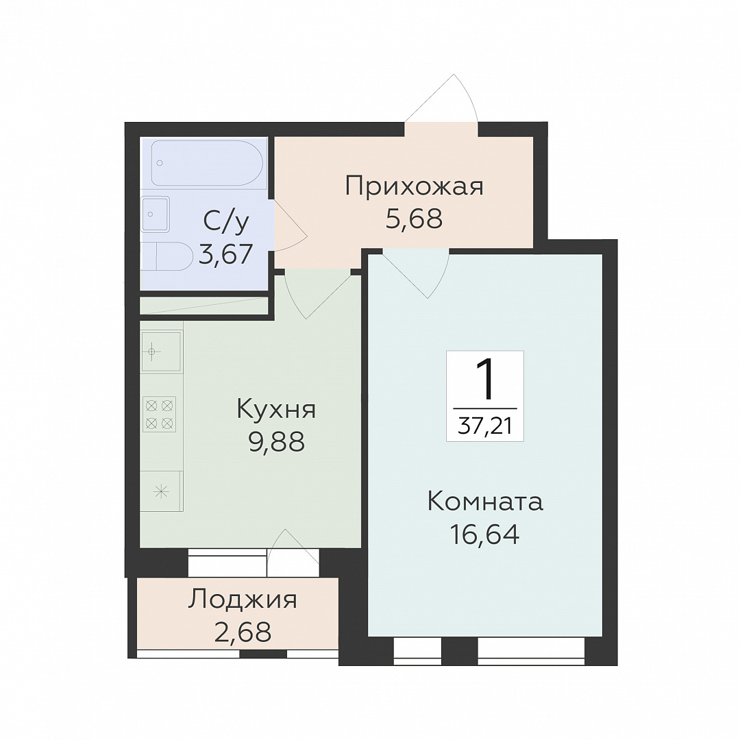 1-комнатная квартира, 37.21 м2, 10 этаж, №99, Квартал 45