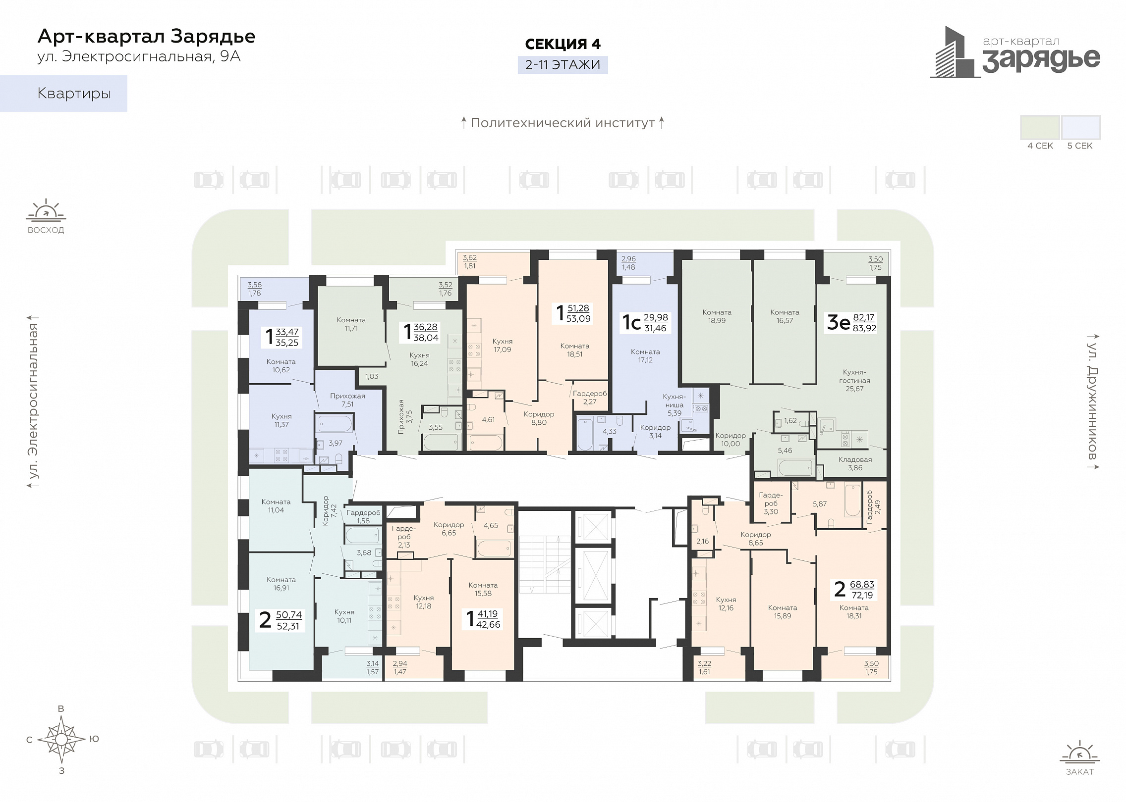 2-комнатная квартира, 72.19 м2, 2 этаж, №523, Зарядье