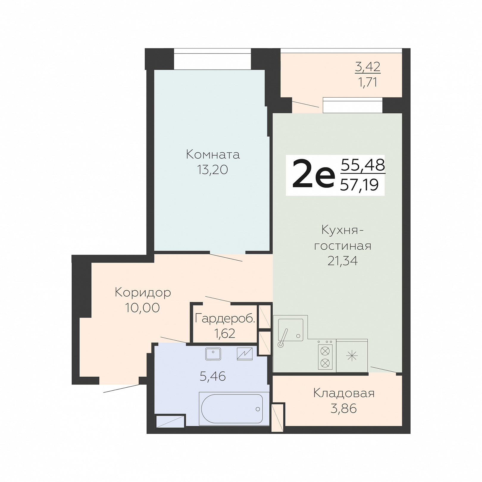 2-ком. квартира (Евро), 57.19 м2, 15 этаж, №624, Зарядье