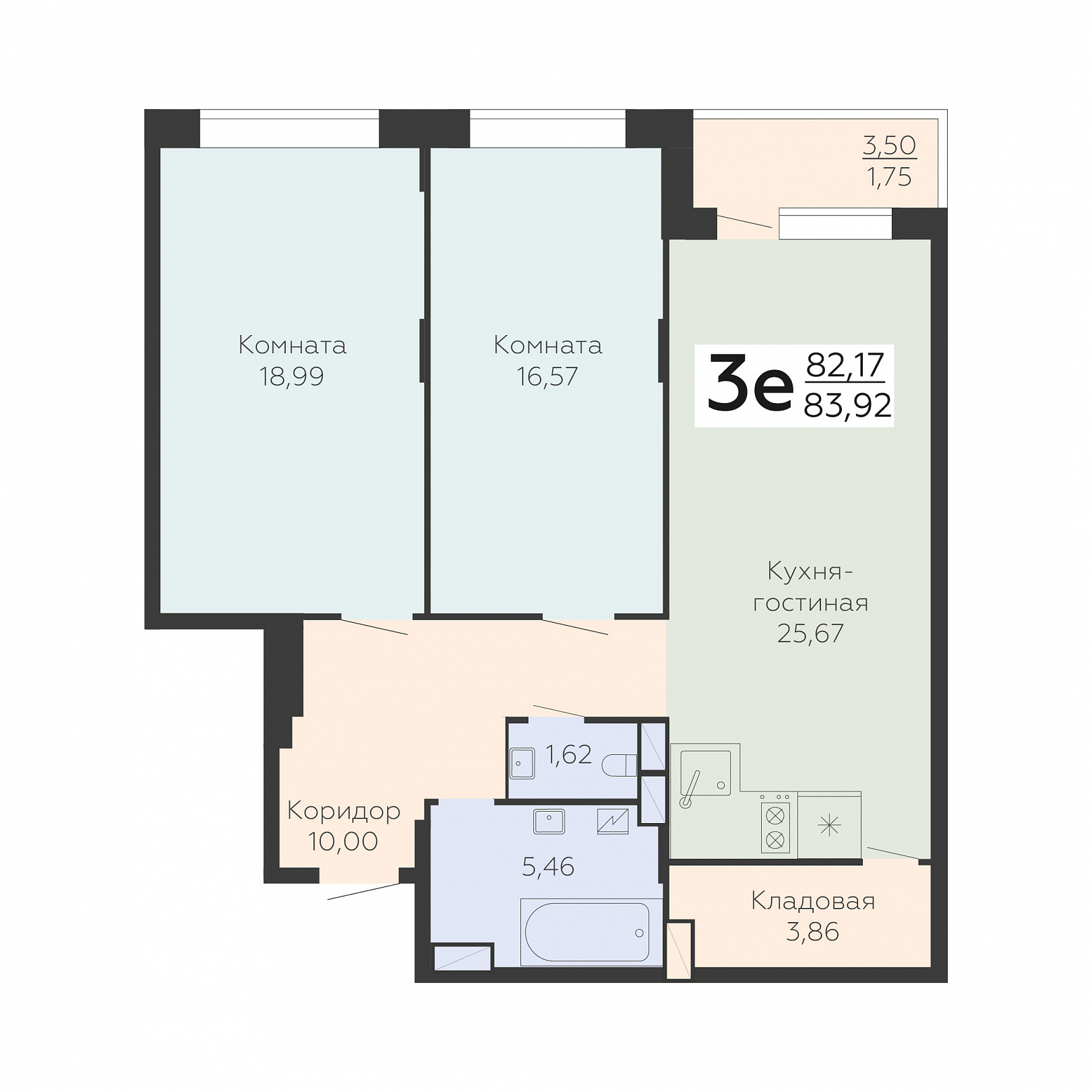 3-ком. квартира (Евро), 83.92 м2, 2 этаж, №522, Зарядье