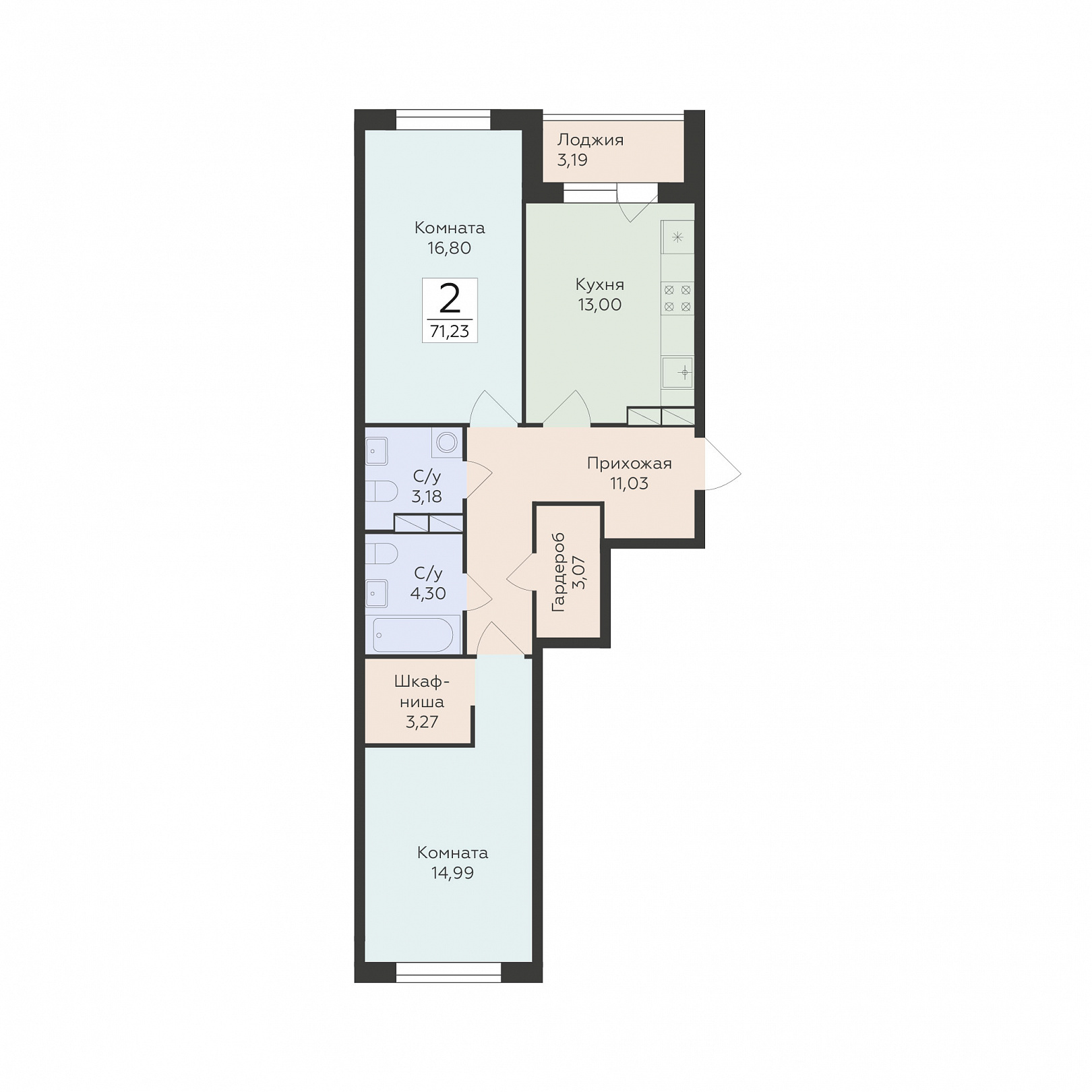 2-комнатная квартира, 71.23 м2, 9 этаж, №125, Романовский