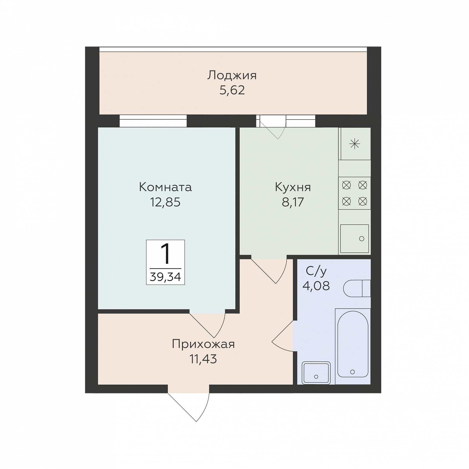 1-комнатная квартира, 39.34 м2, 5 этаж, №321, Классики