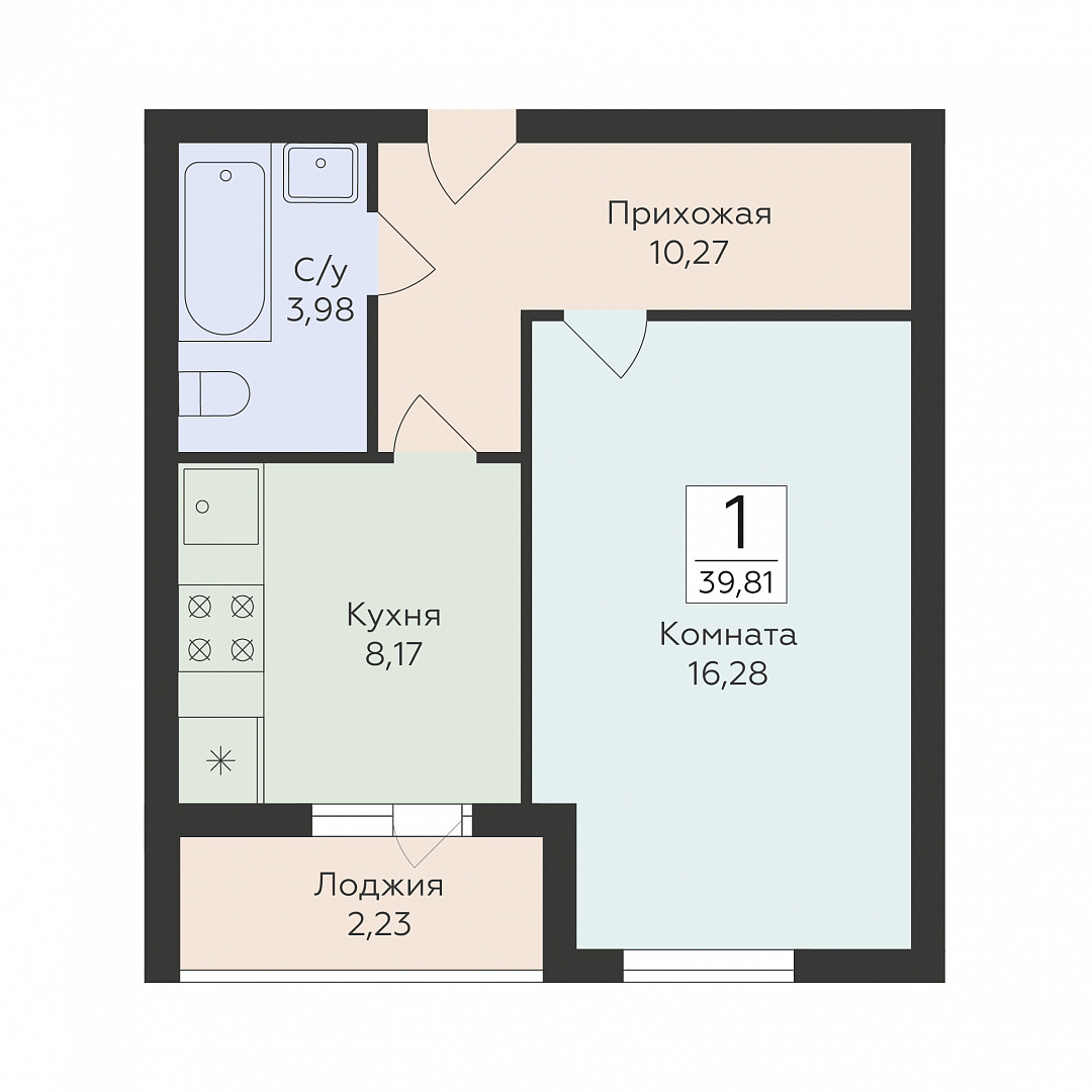 1-комнатная квартира, 39.81 м2, 5 этаж, №434, Классики