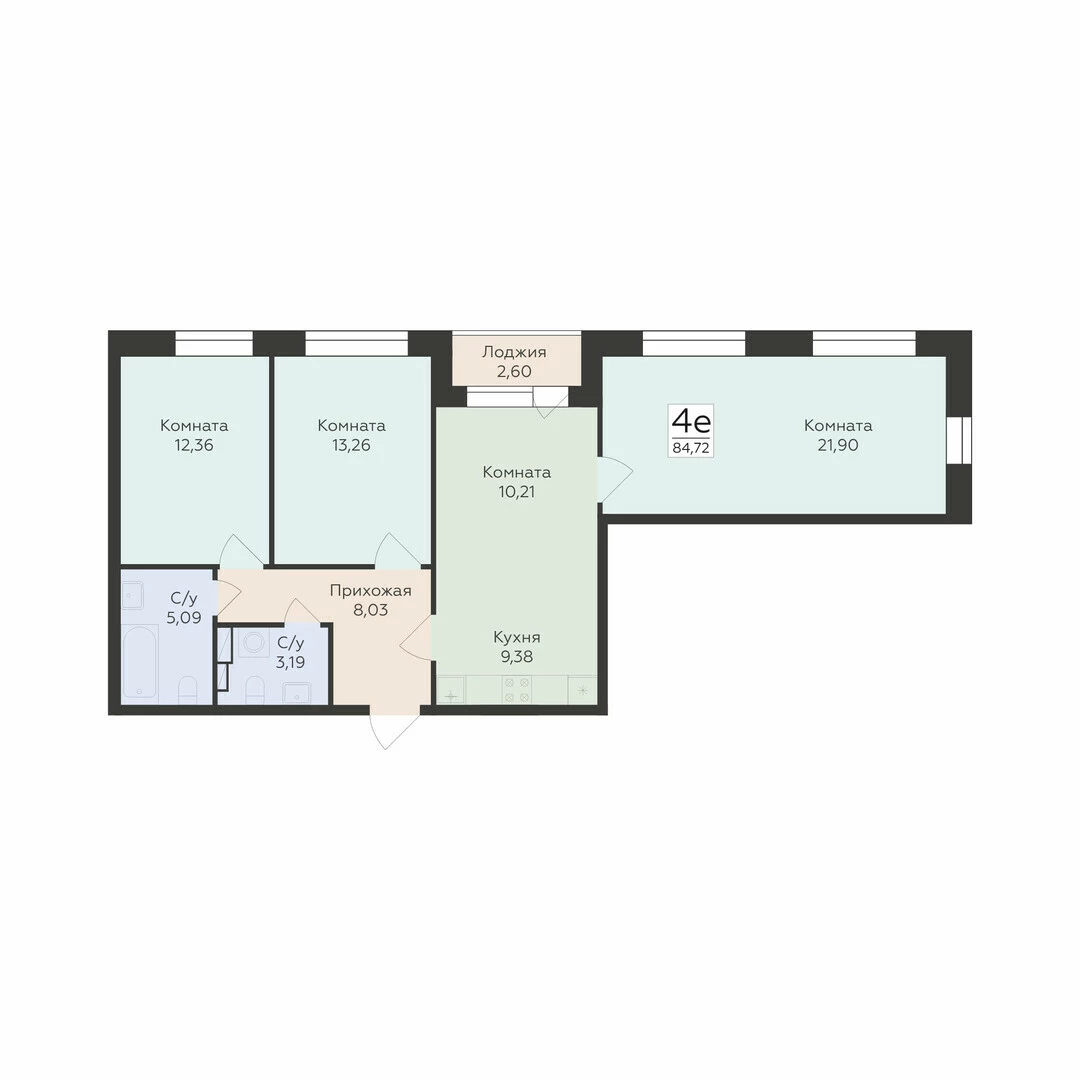 4-ком квартира (Евро), 84.72 м2, 6 этаж, №446, Октябрьский квартал
