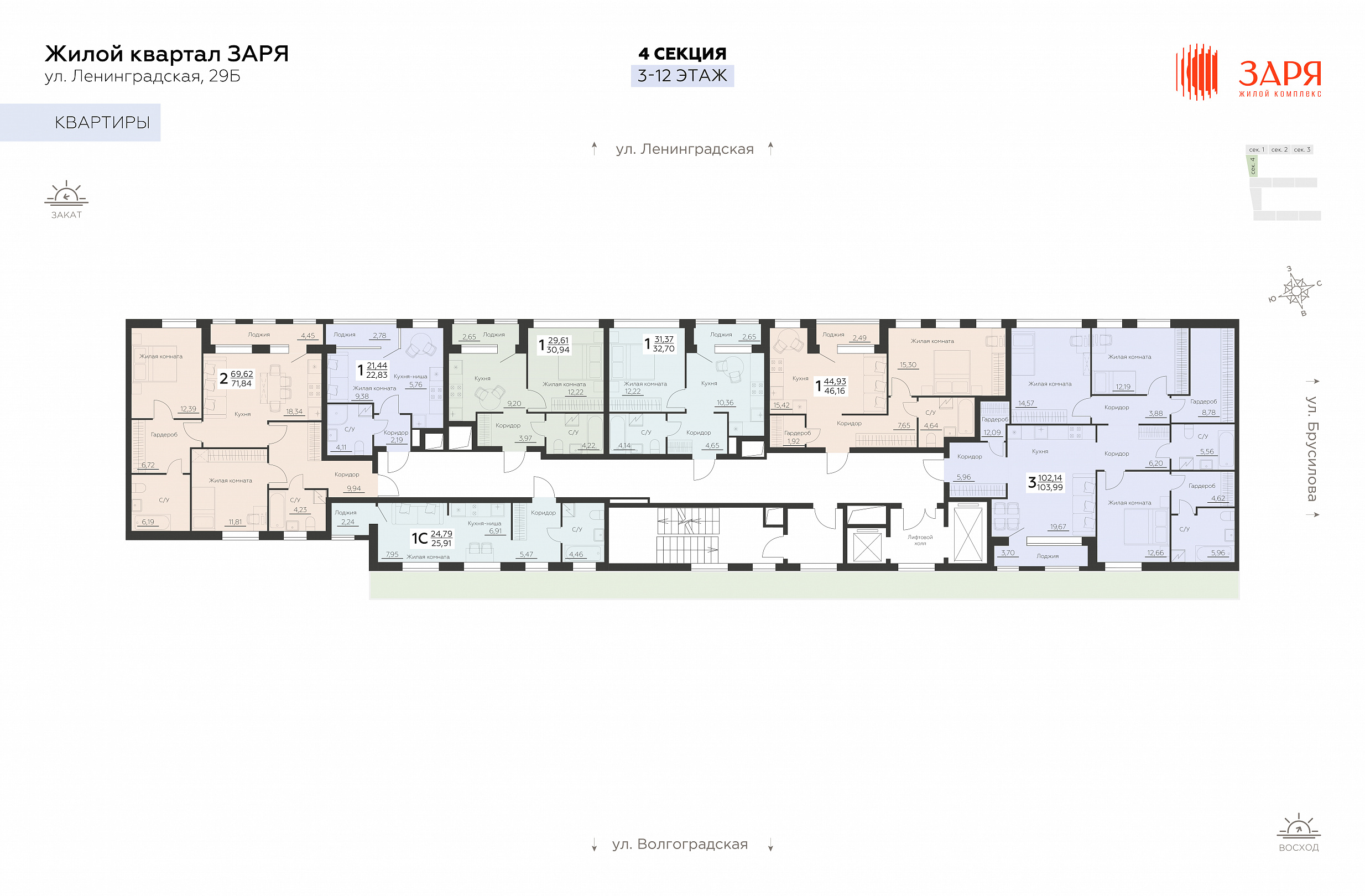 1-комнатная квартира, 32.7 м2, 4 этаж, №330, Заря