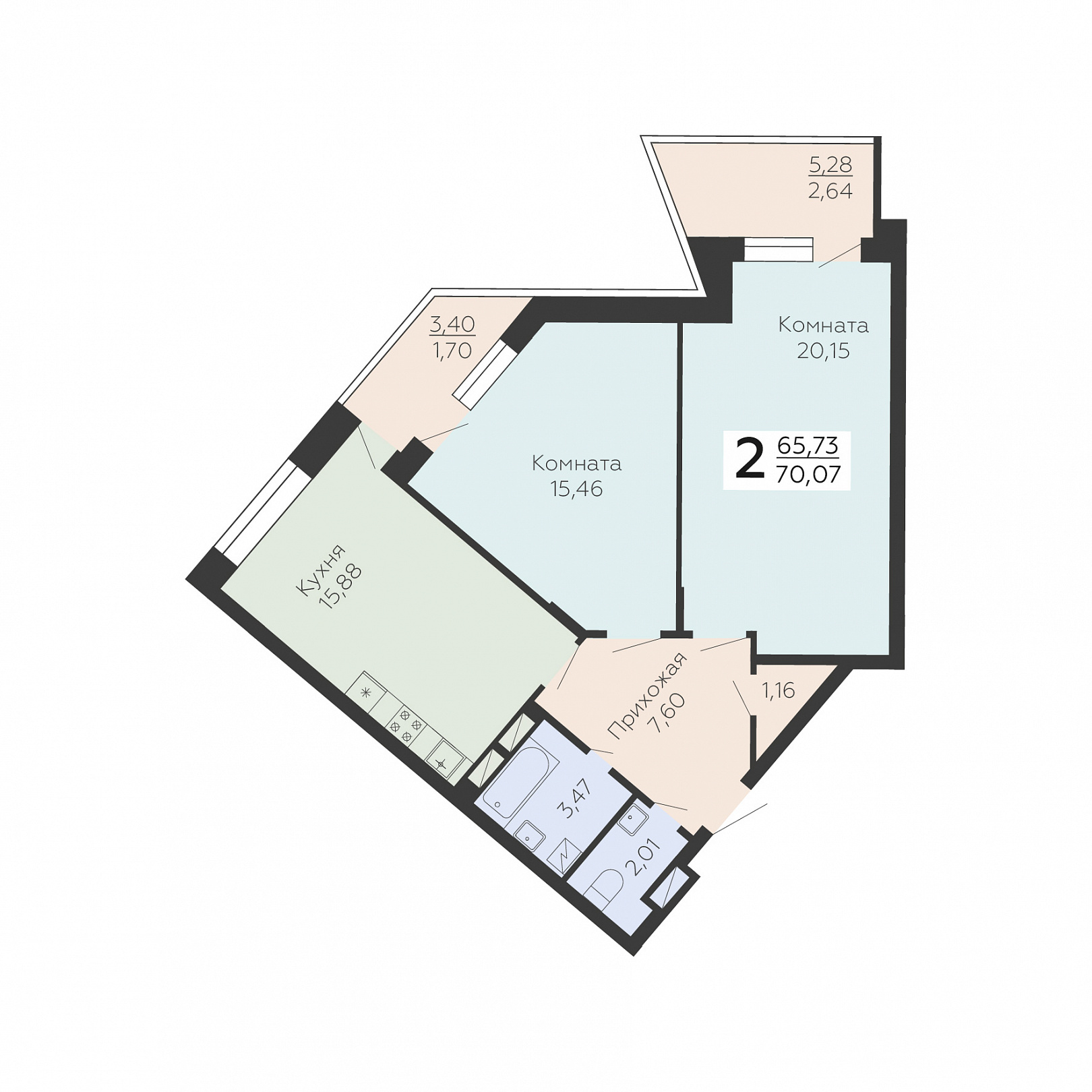 2-комнатная квартира, 70.07 м2, 8 этаж, №947, Зарядье