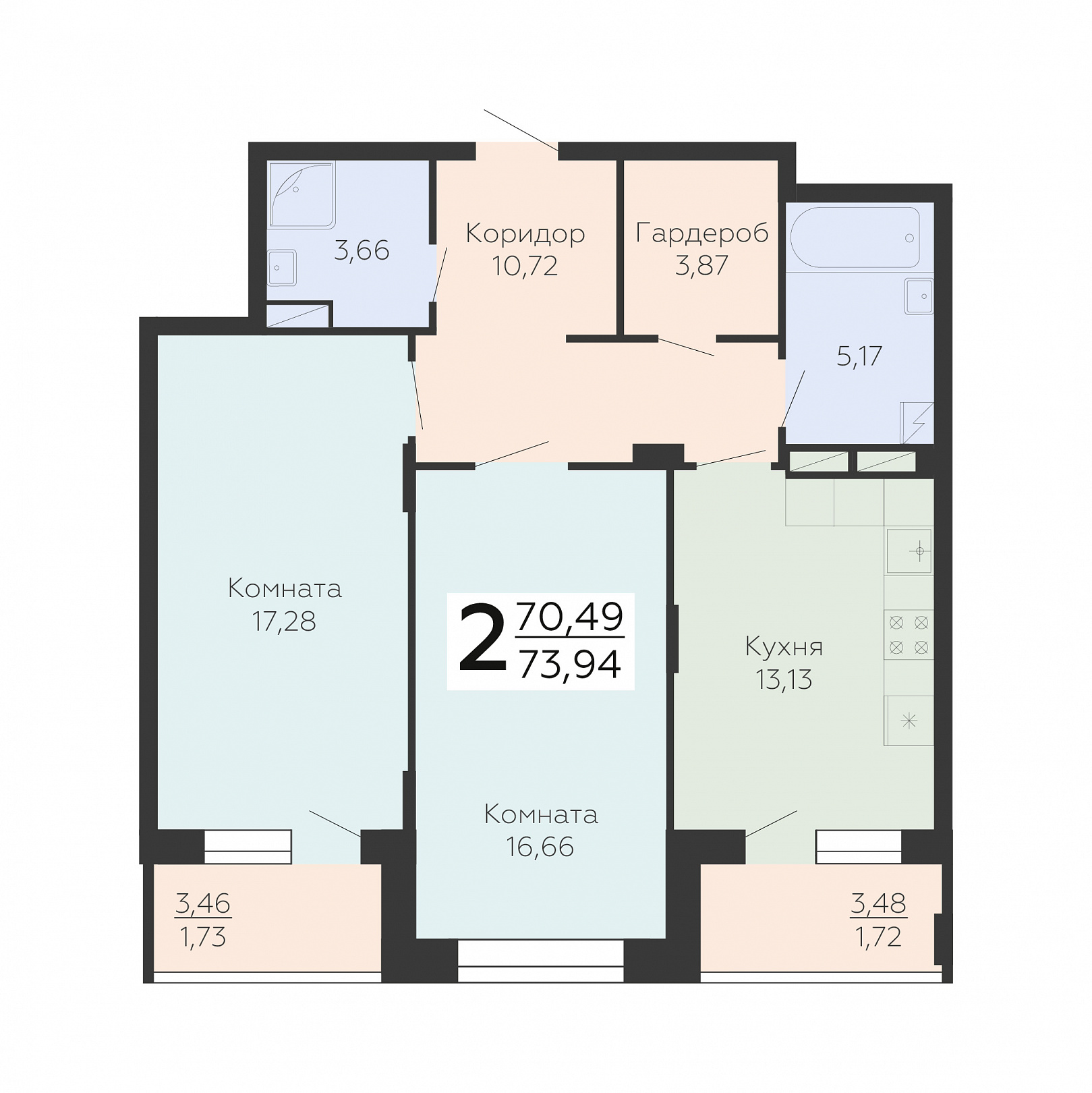 2-комнатная квартира, 73.94 м2, 7 этаж, №275, Зарядье
