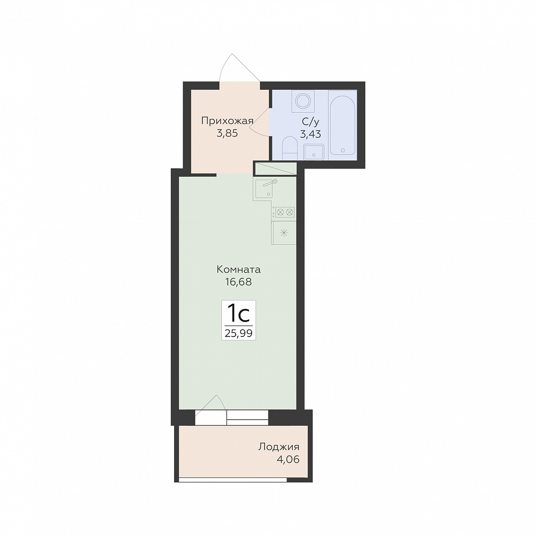 1-комнатная (студия), 25.99 м2, 12 этаж, №712, Flora