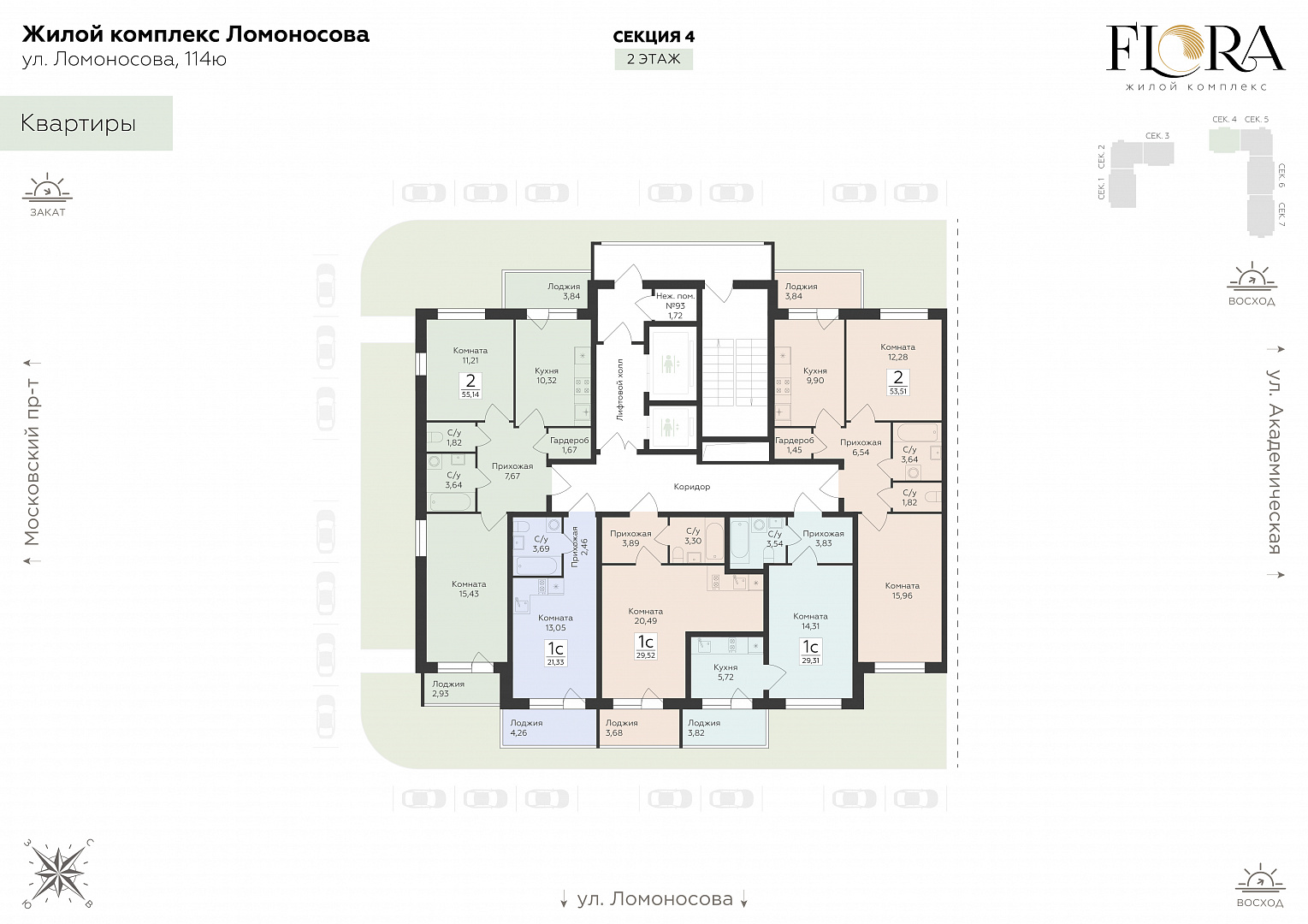 2-комнатная квартира, 53.51 м2, 2 этаж, №327, Flora