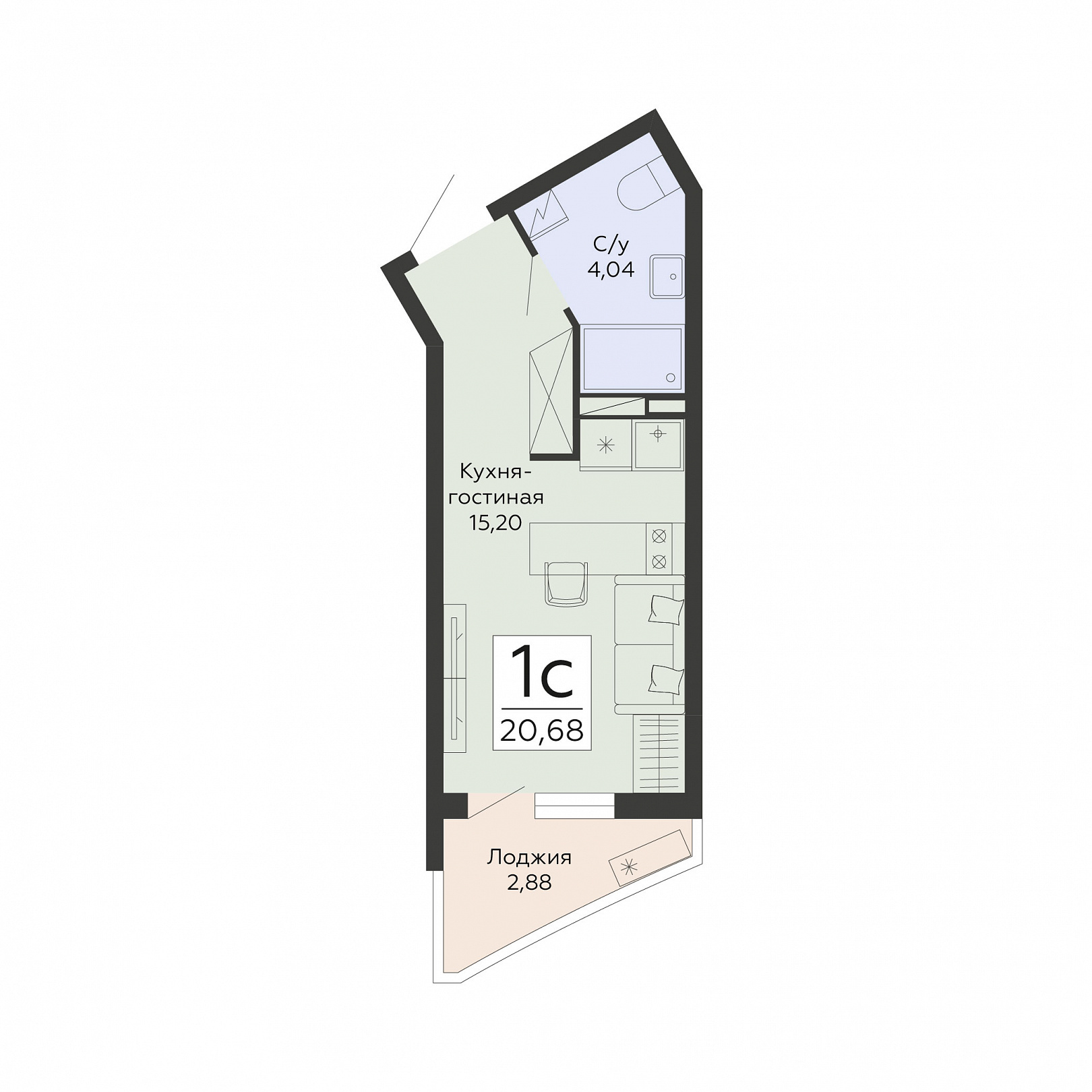1-комнатная (студия), 20.68 м2, 8 этаж, №85, Мармелад