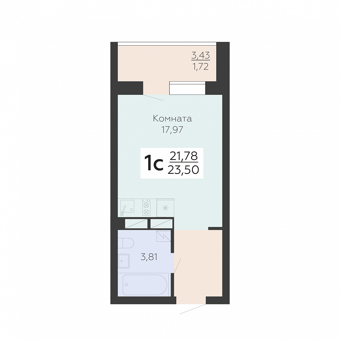 1-комнатная квартира, 23.5 м2, 12 этаж, №509/1, Зарядье