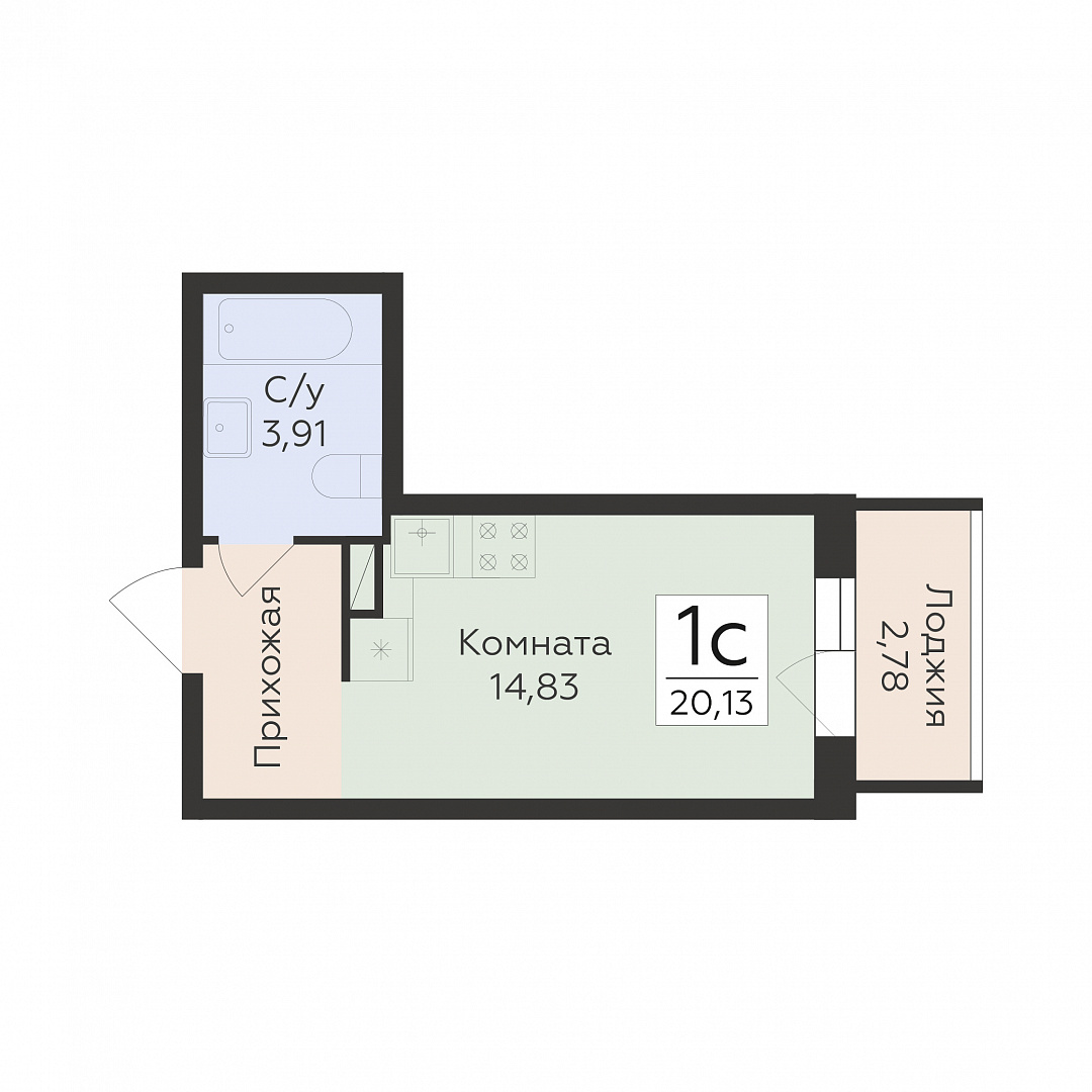 1-комнатная (студия), 20.13 м2, 3 этаж, №22, Авиапарк