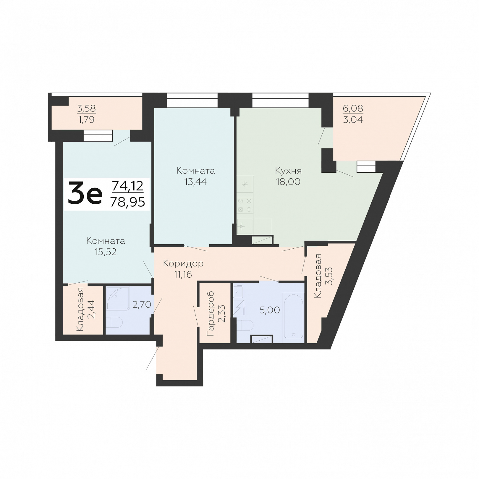 2-комнатная квартира, 78.95 м2, 16 этаж, №345, Зарядье