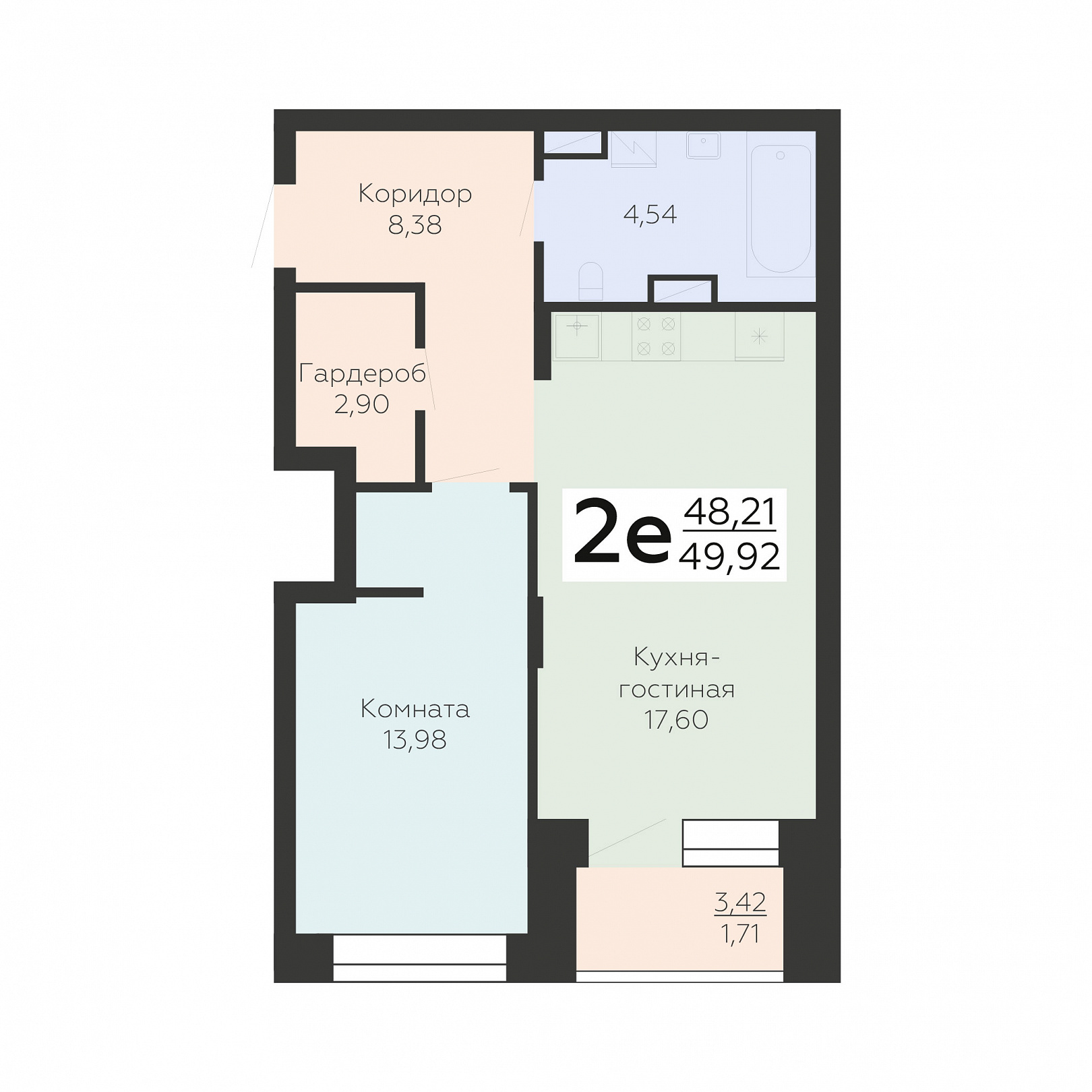 2-ком. квартира (Евро), 49.92 м2, 13 этаж, №133, Зарядье