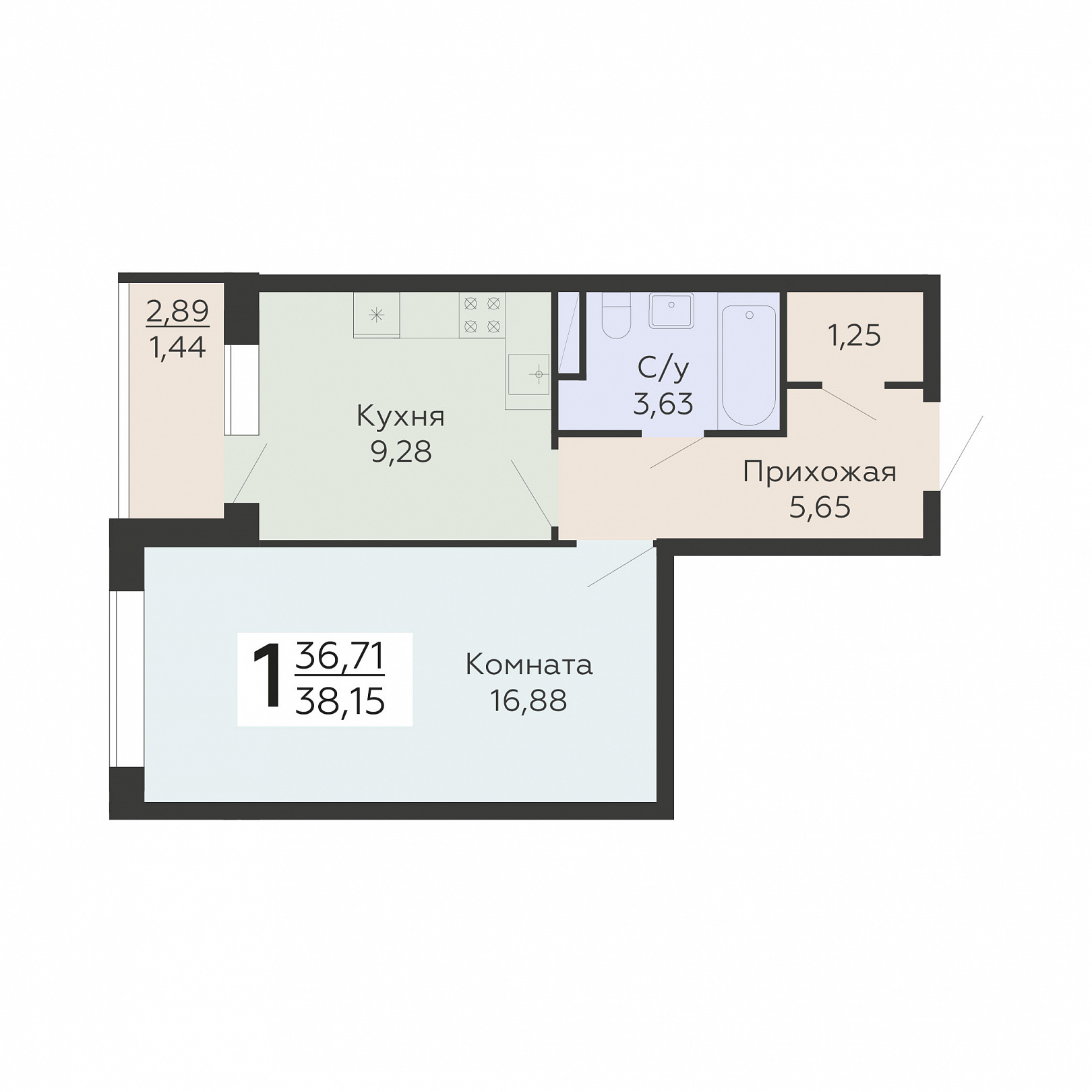 1-комнатная квартира, 38.15 м2, 18 этаж, №536, Никитинские сады