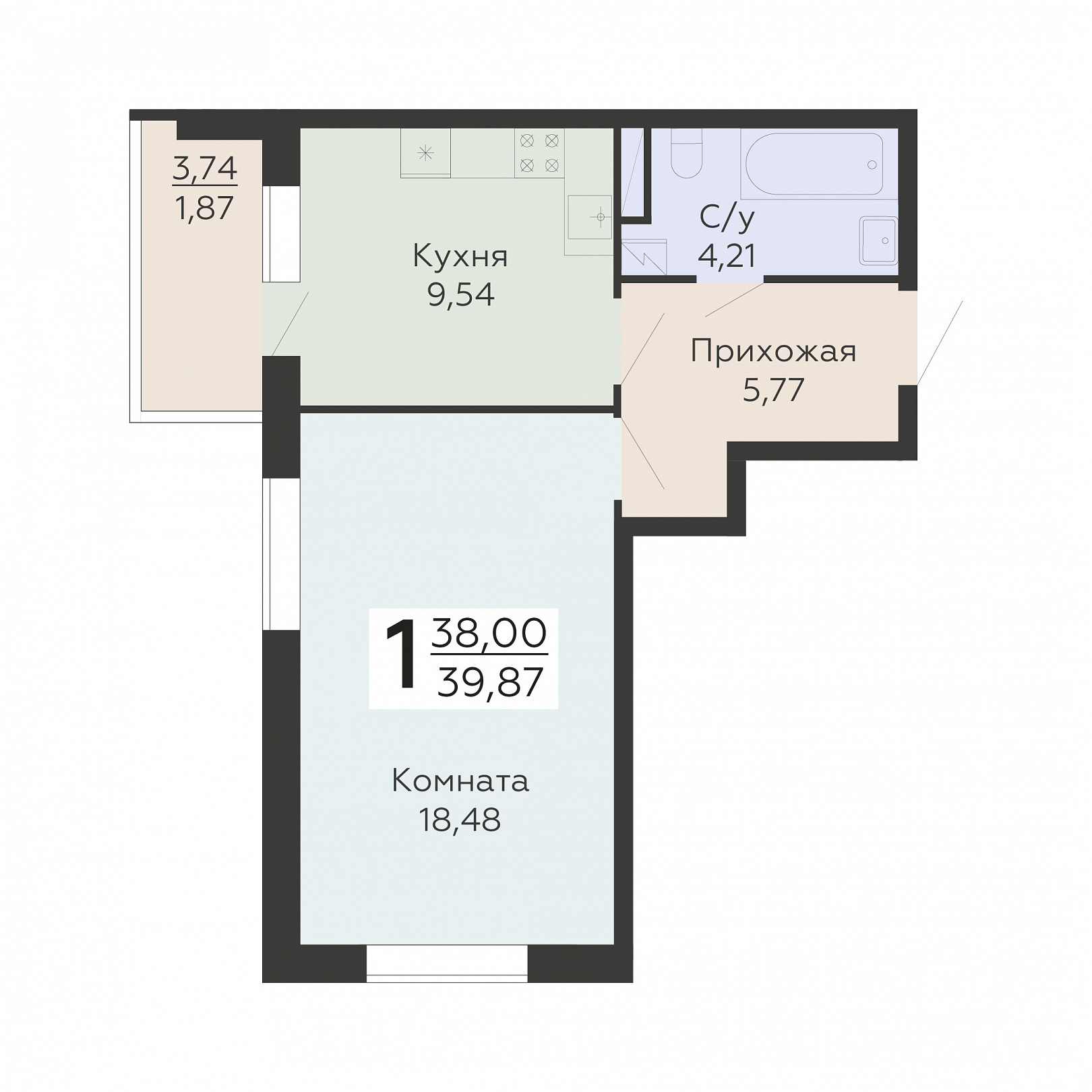 1-комнатная квартира, 39.87 м2, 10 этаж, №129, Никитинские сады