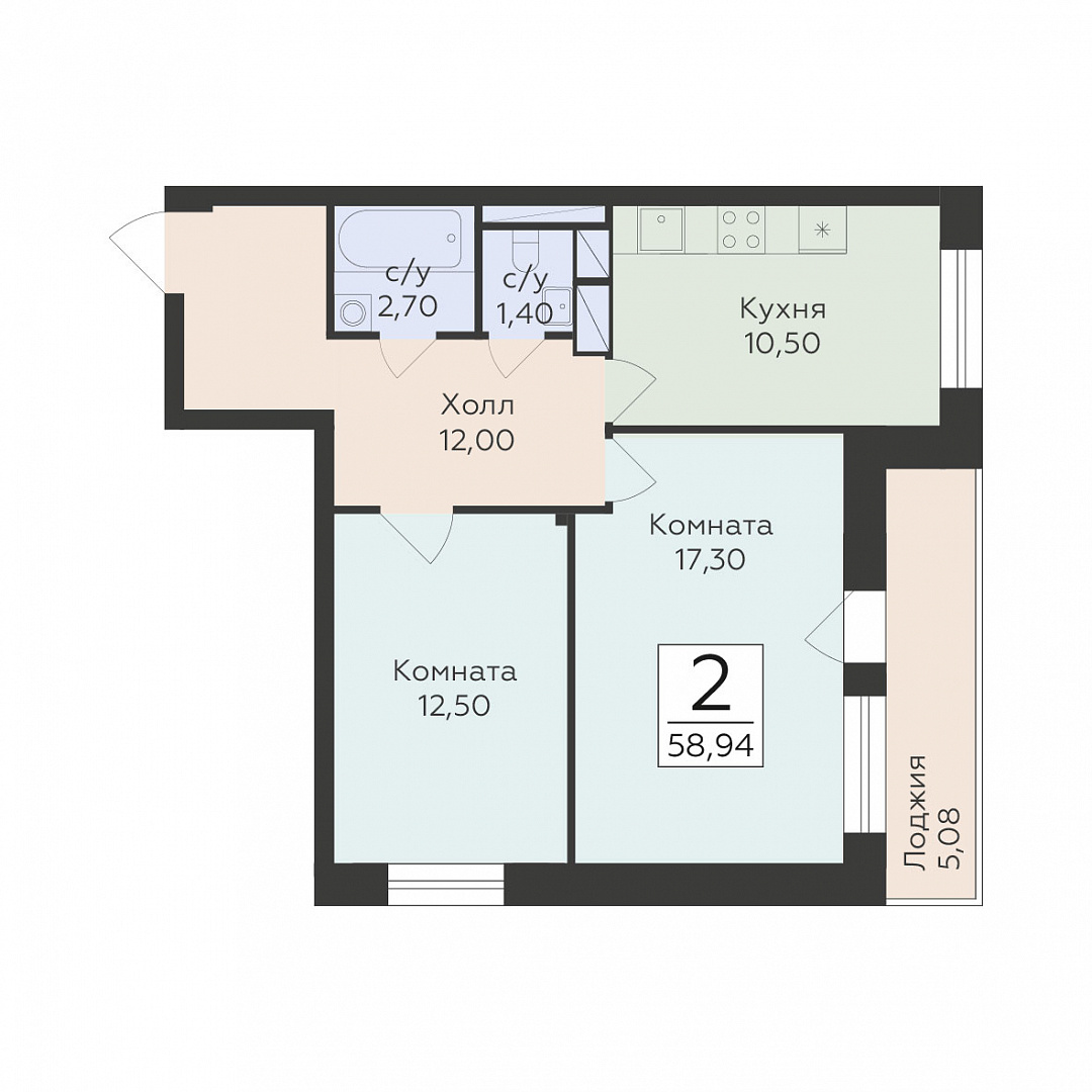 - Поверхность стен коридора, комнат и кухни исполнена обоями под покраску
