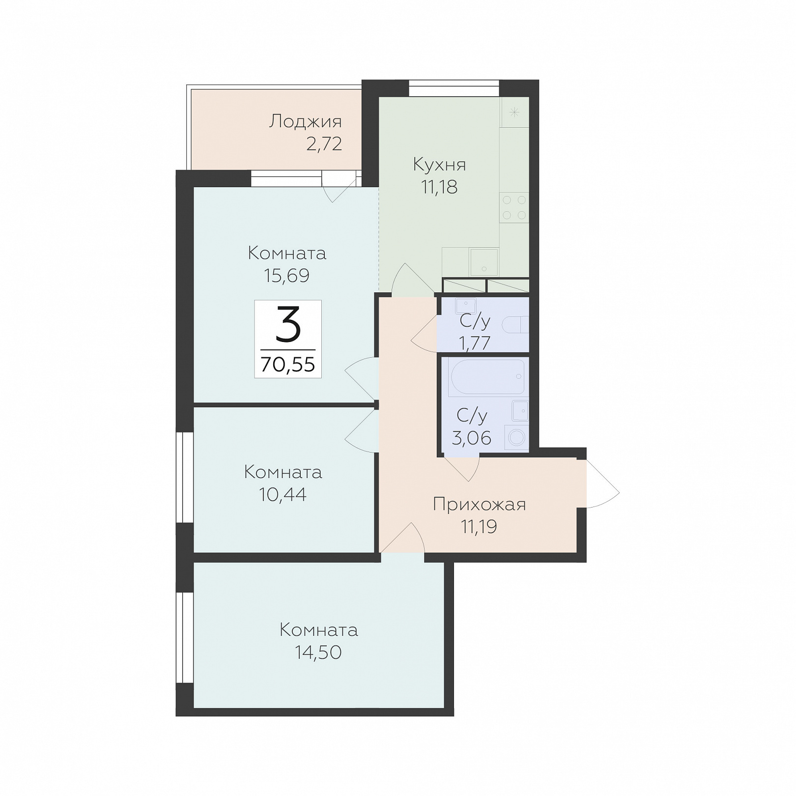 3‑комнатная