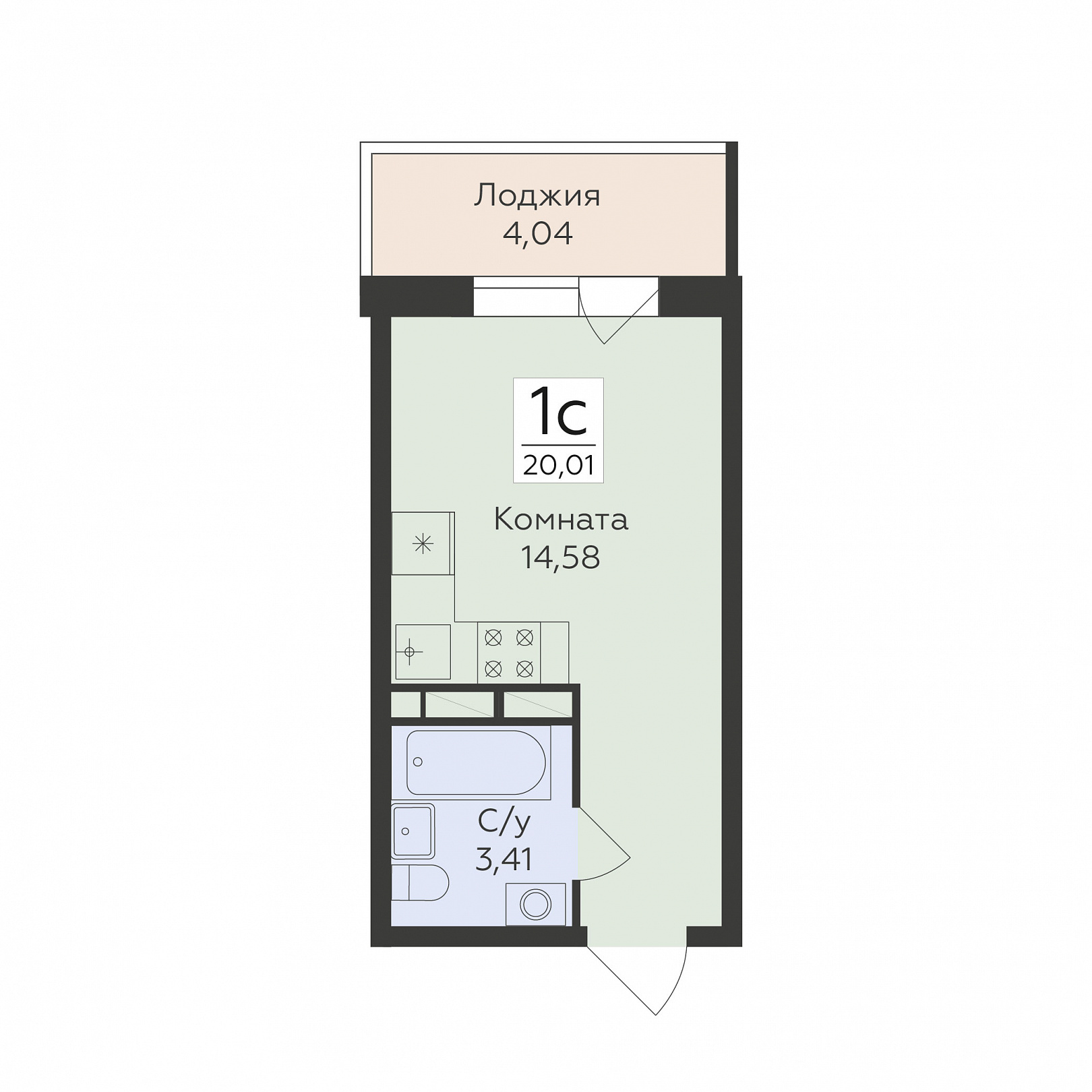 1-комнатная (студия), 20.01 м2, 8 этаж, №69, Flora