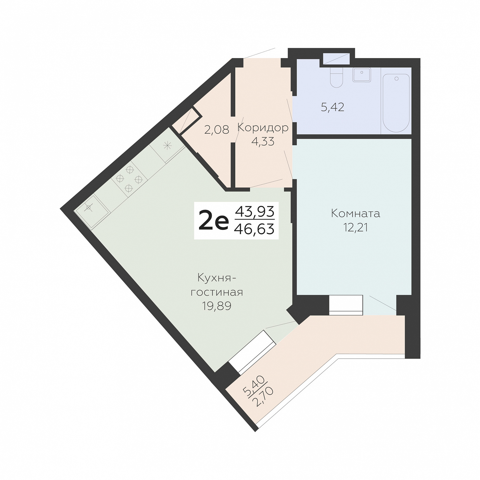 2-ком. квартира (Евро), 46.63 м2, 5 этаж, №419, Зарядье