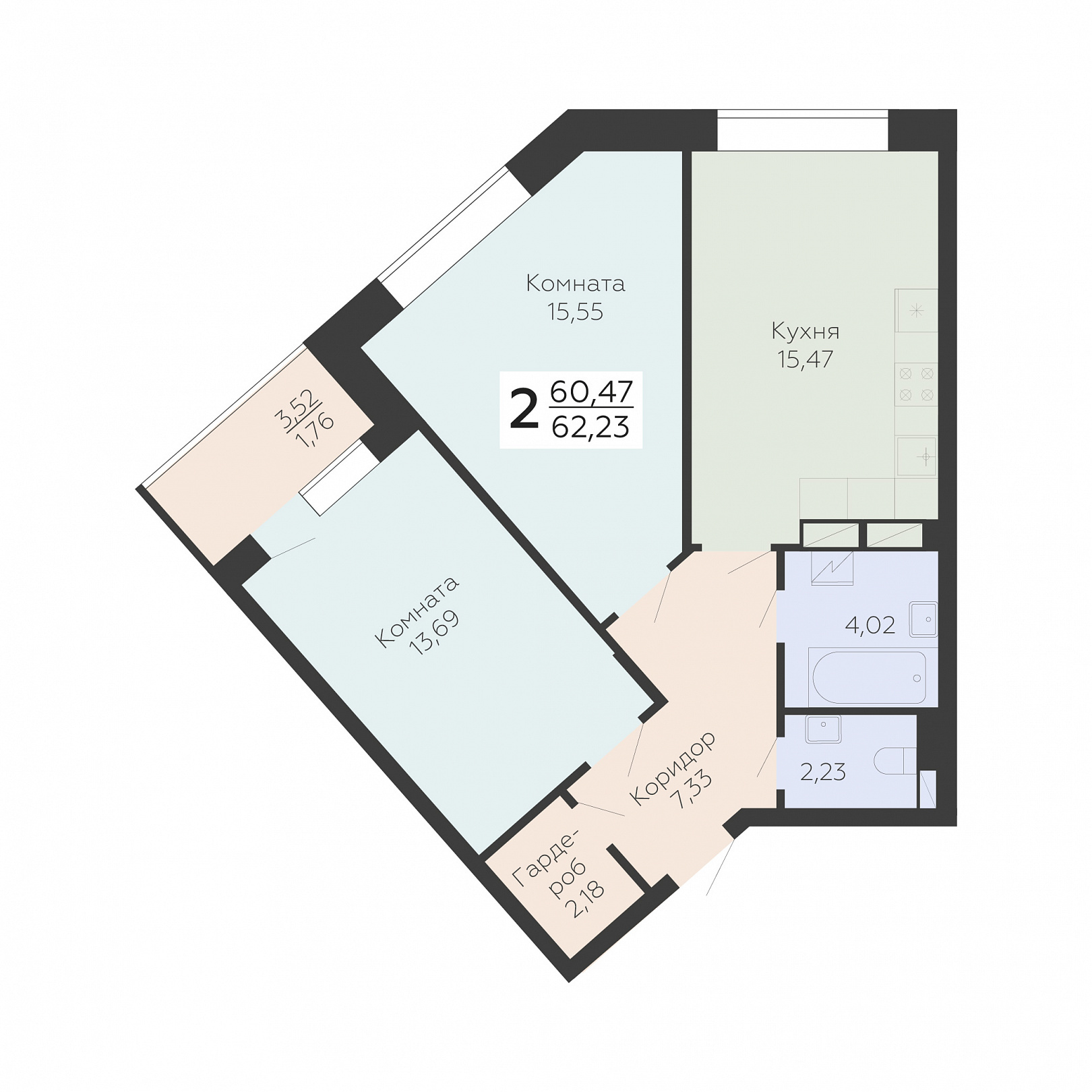 2-комнатная квартира, 62.23 м2, 7 этаж, №447, Зарядье