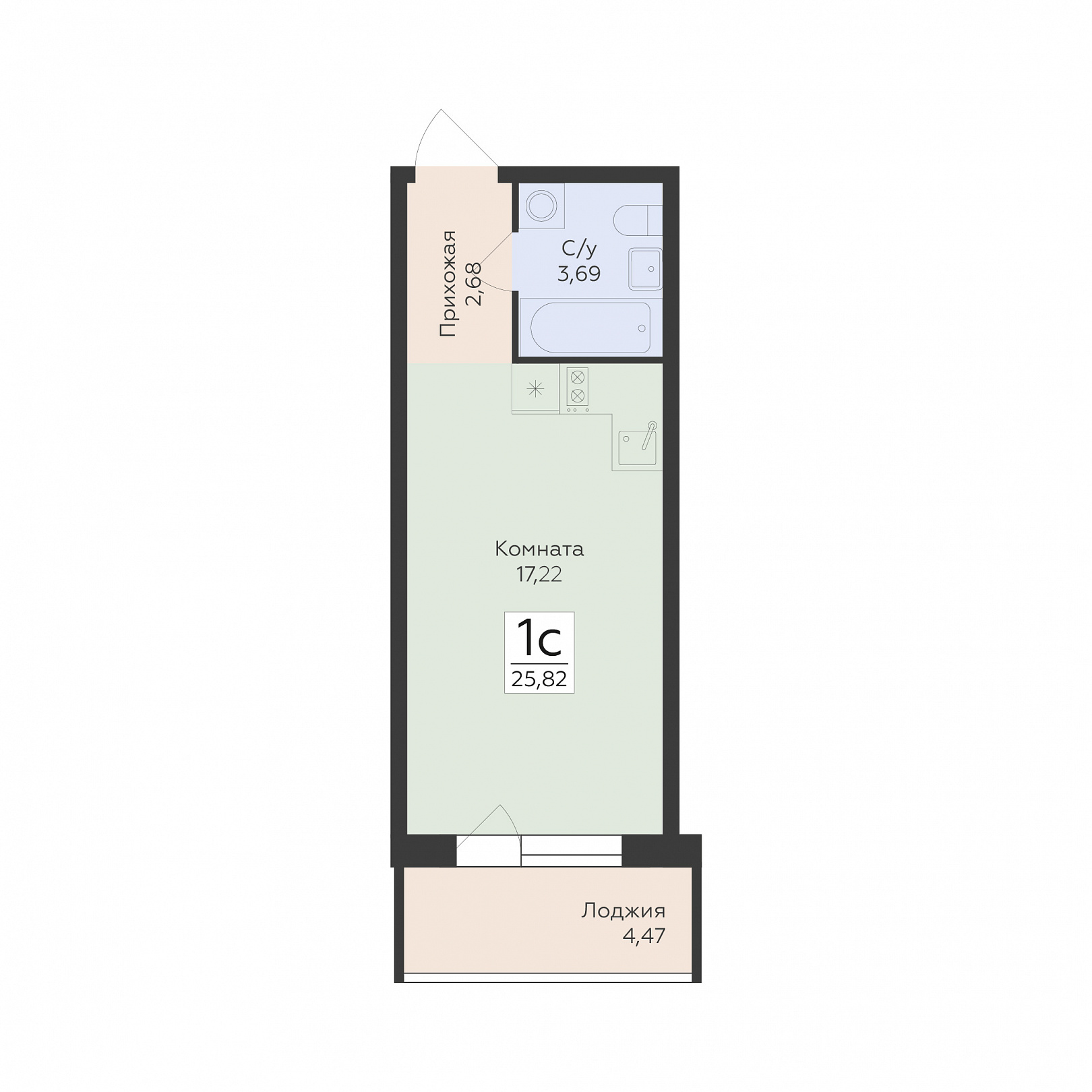 1-комнатная (студия), 25.82 м2, 13 этаж, №588, Flora