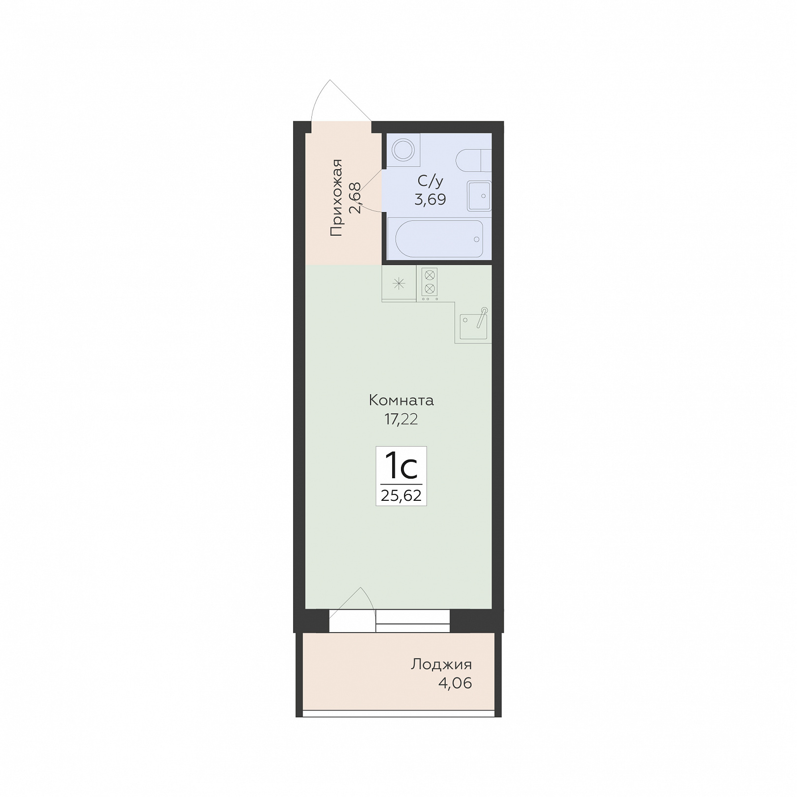 1-комнатная (студия), 25.62 м2, 11 этаж, №571, Flora