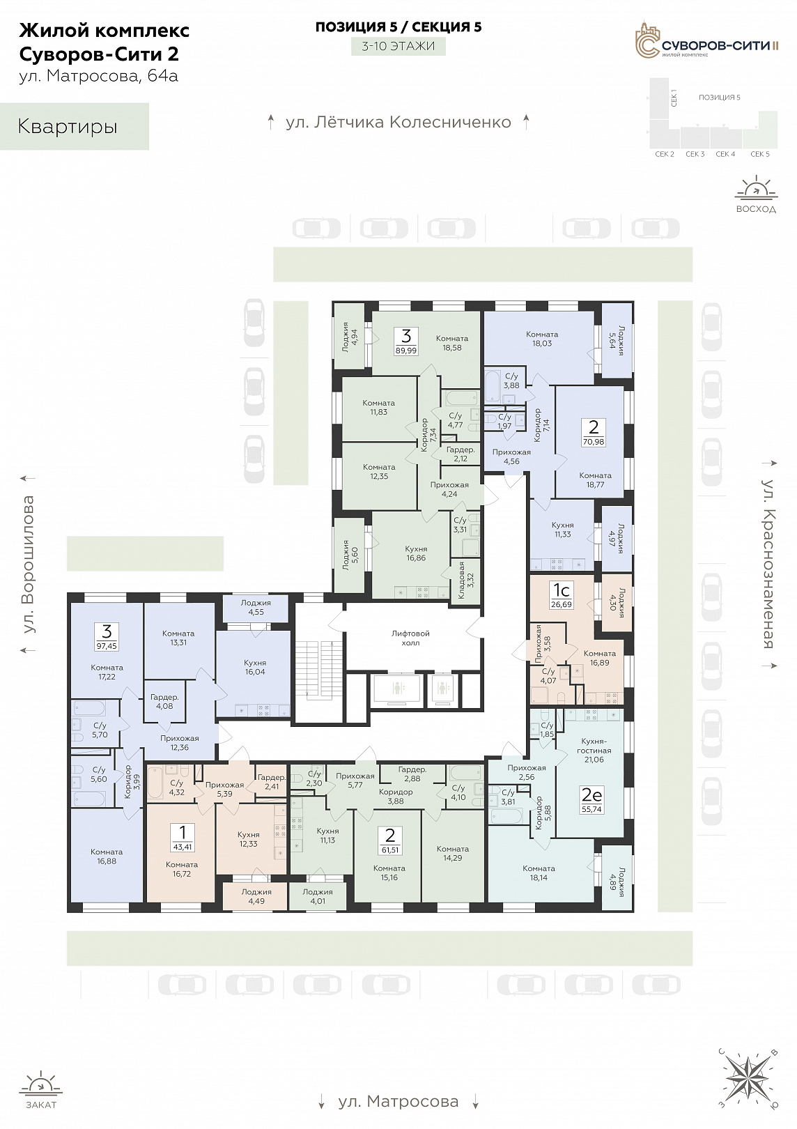 2-ком. квартира (Евро), 55.74 м2, 8 этаж, №310, Суворов сити 2