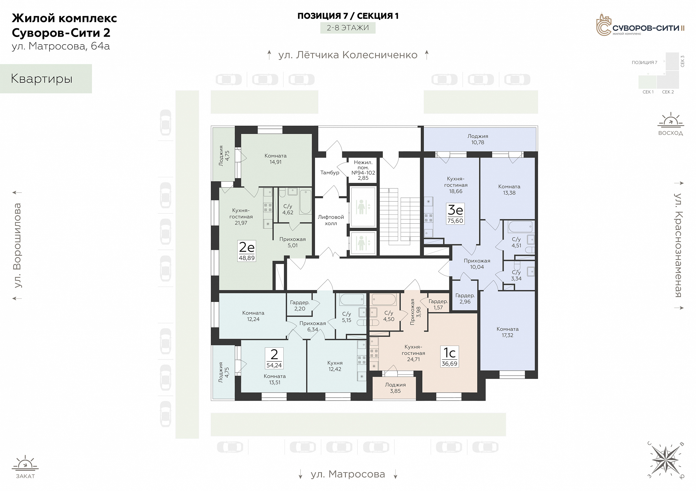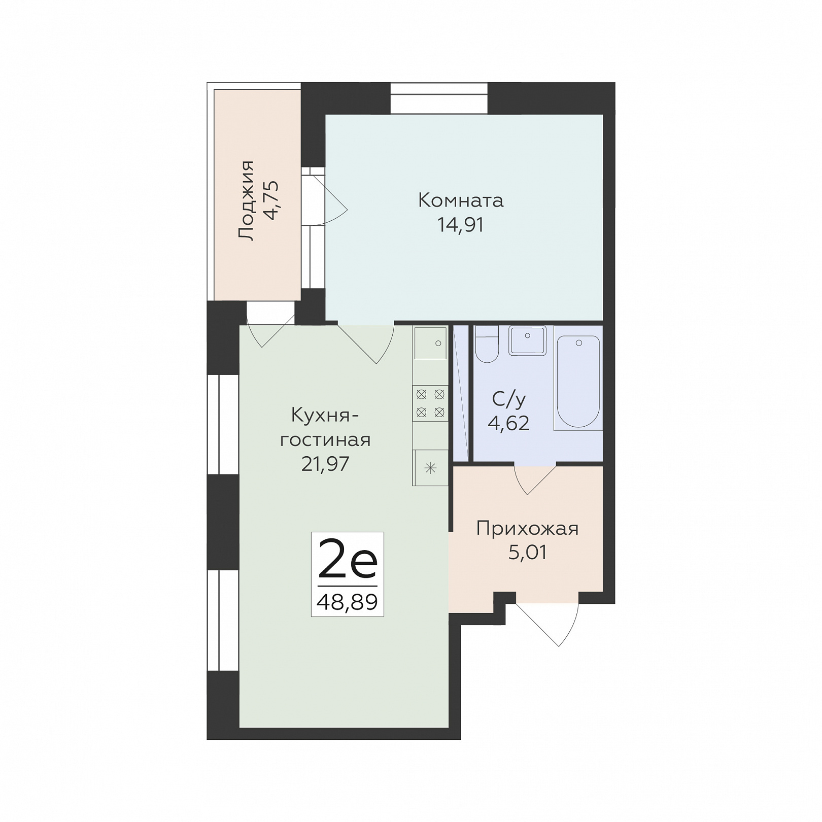 2-ком. квартира (Евро), 48.89 м2, 4 этаж, №438, Суворов сити 2