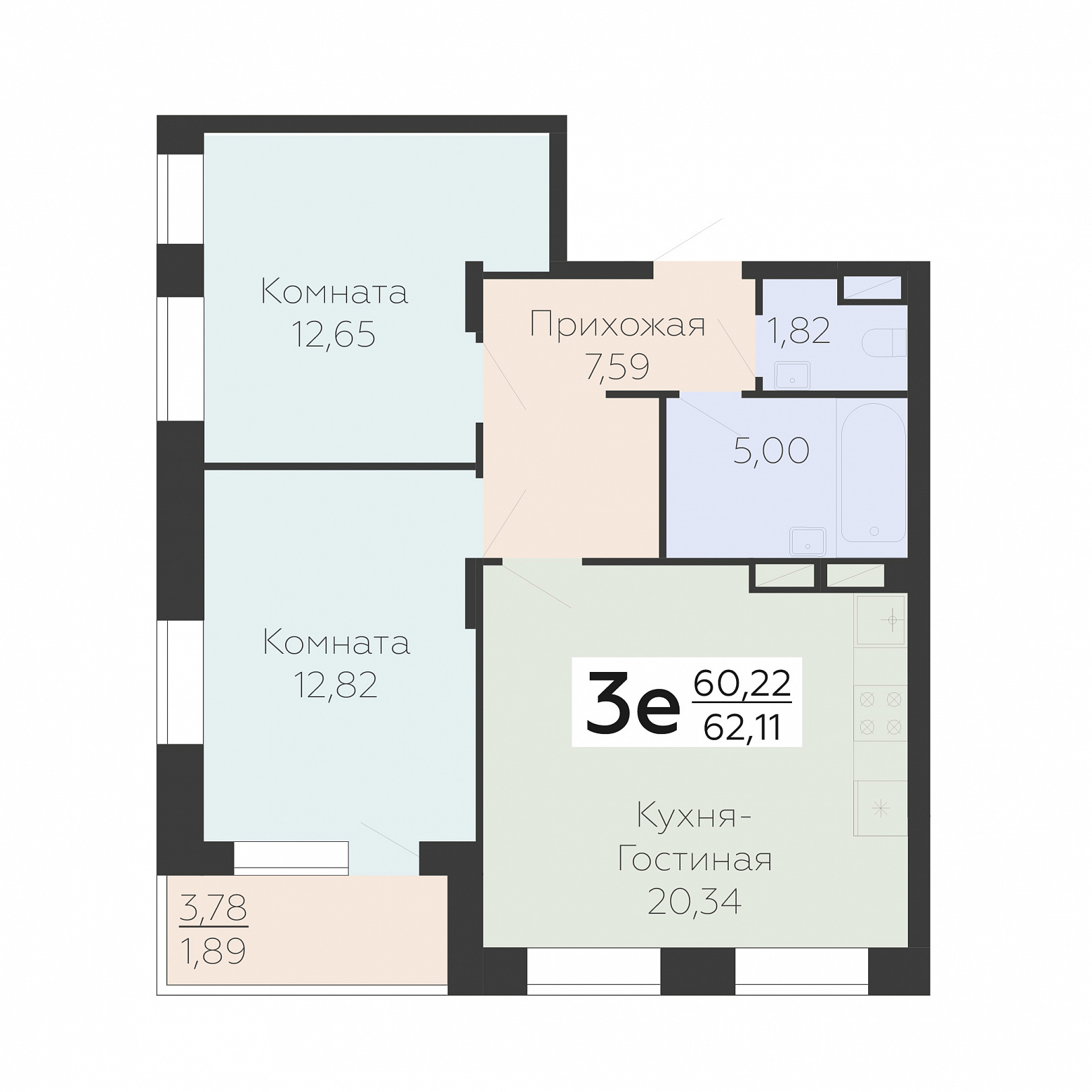 3-ком. квартира (Евро), 62.11 м2, 16 этаж, №836, Зарядье