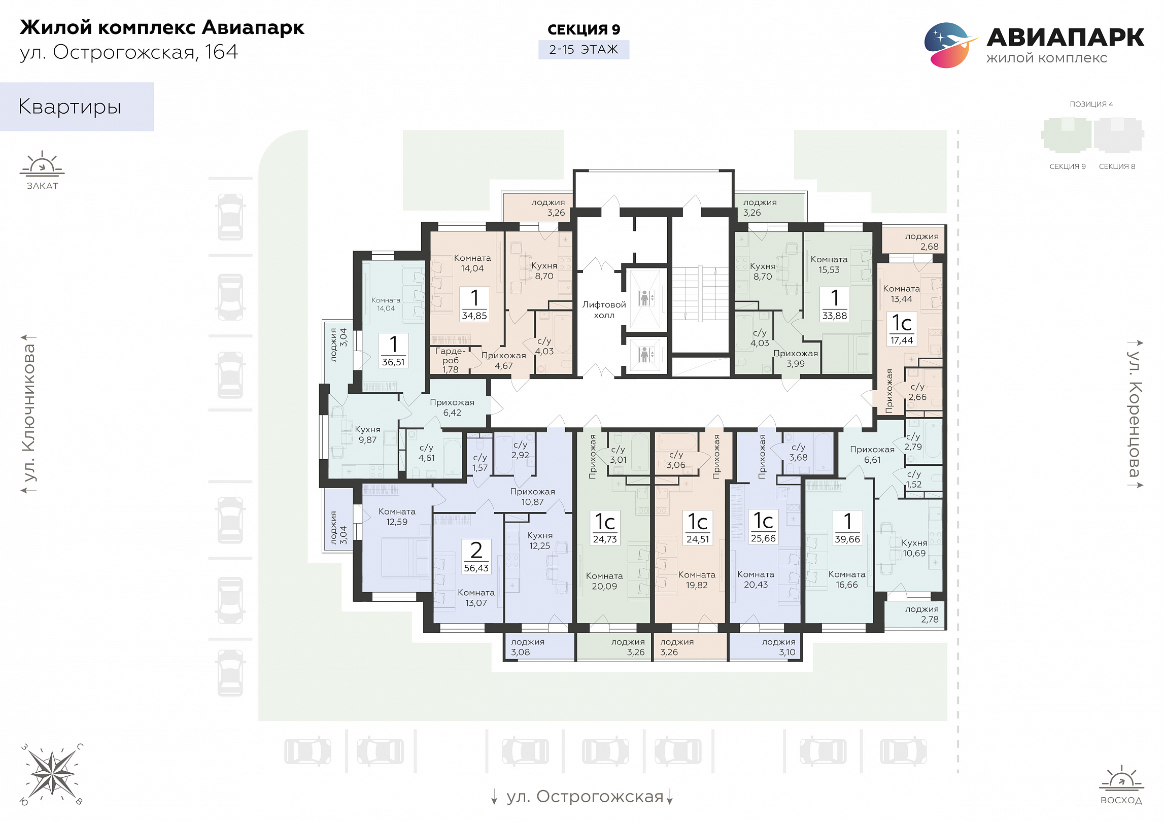 2-комнатная квартира, 56.43 м2, 8 этаж, №202, Авиапарк