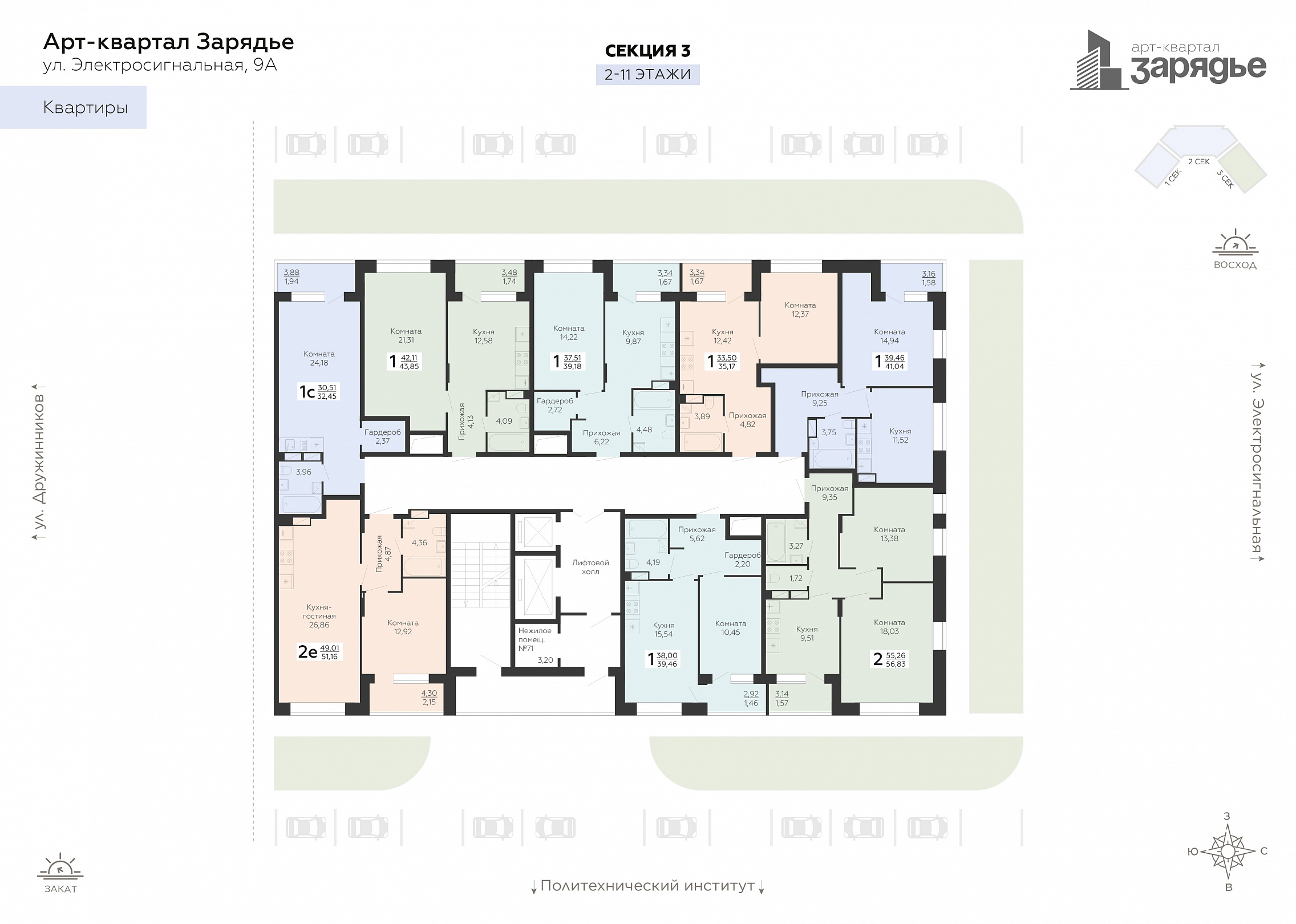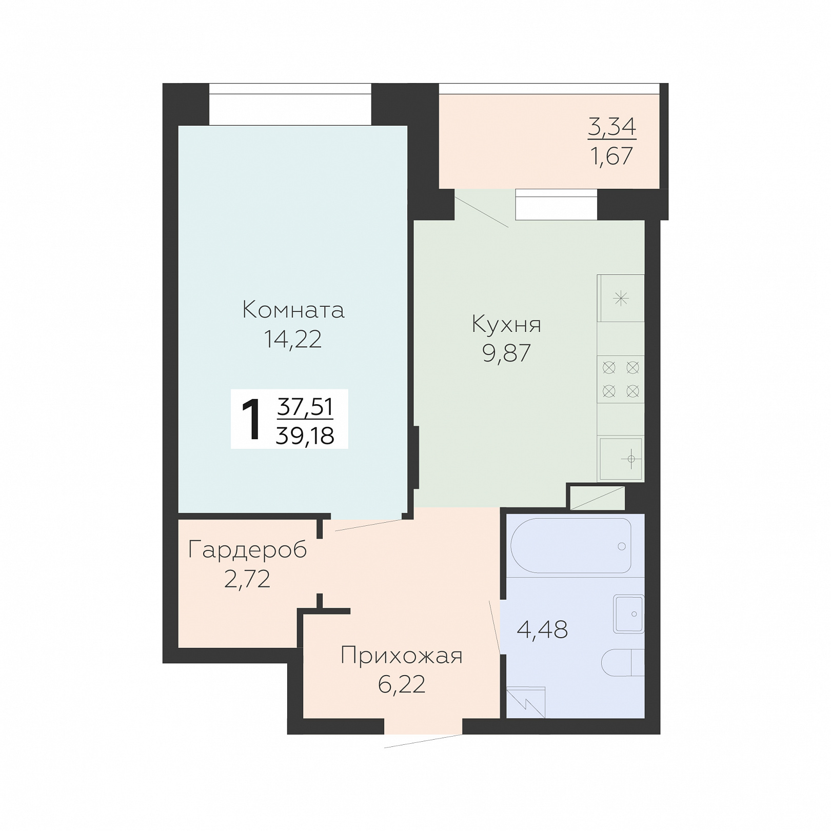 1-комнатная квартира, 39.18 м2, 4 этаж, №1 036, Зарядье