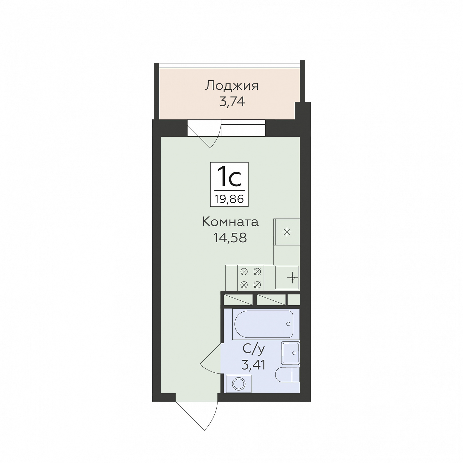 1-комнатная (студия), 19.86 м2, 13 этаж, №120, Flora