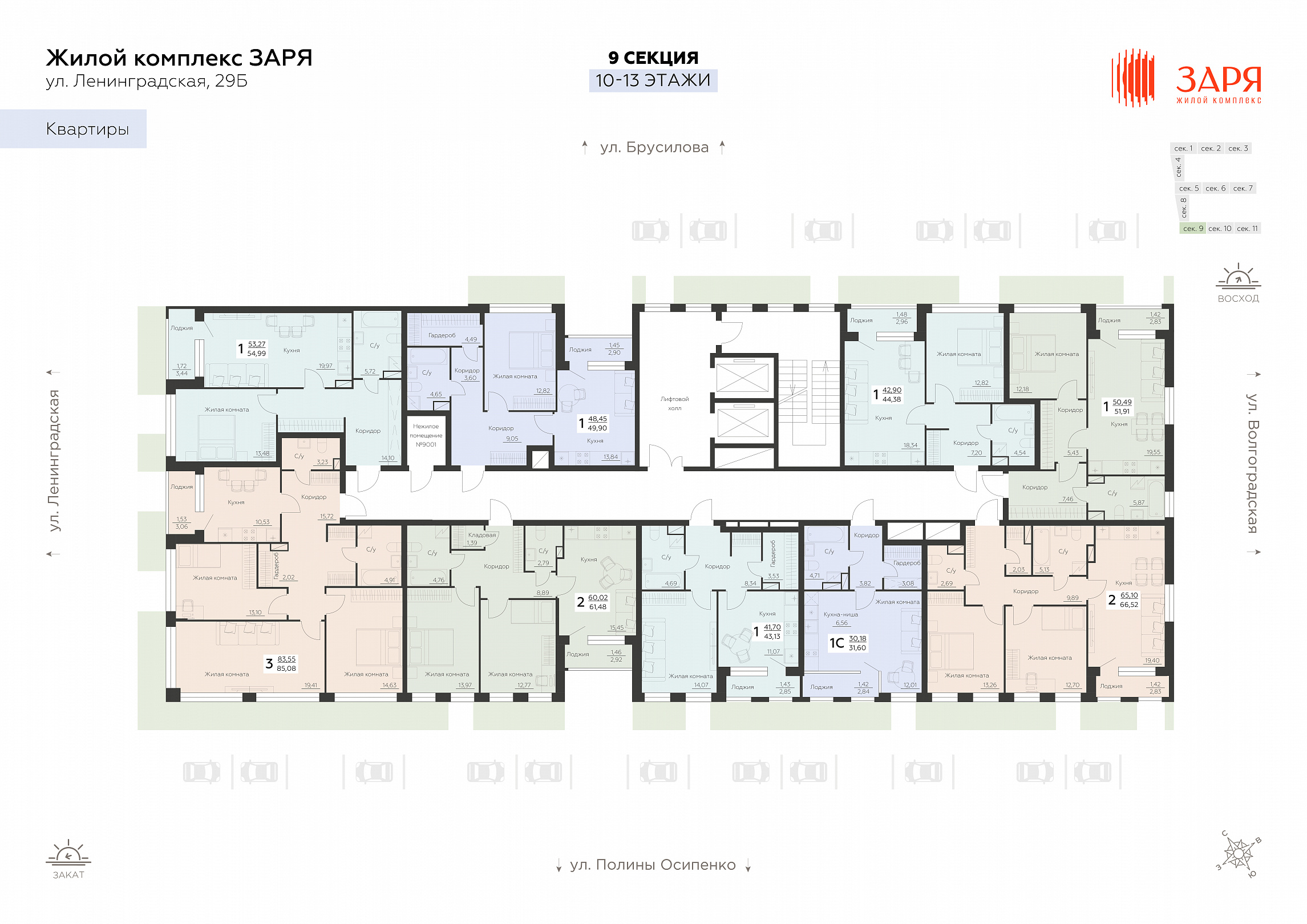1-комнатная квартира, 49.9 м2, 11 этаж, №870, Заря