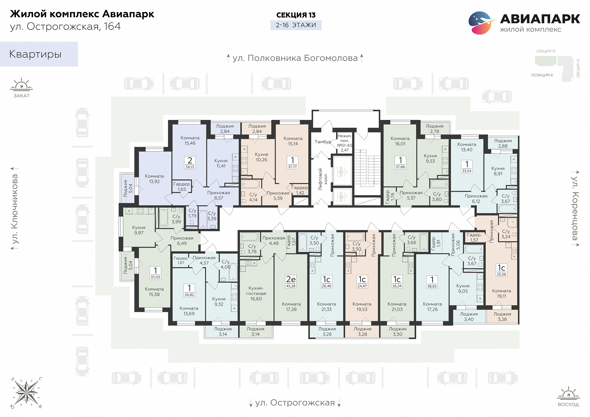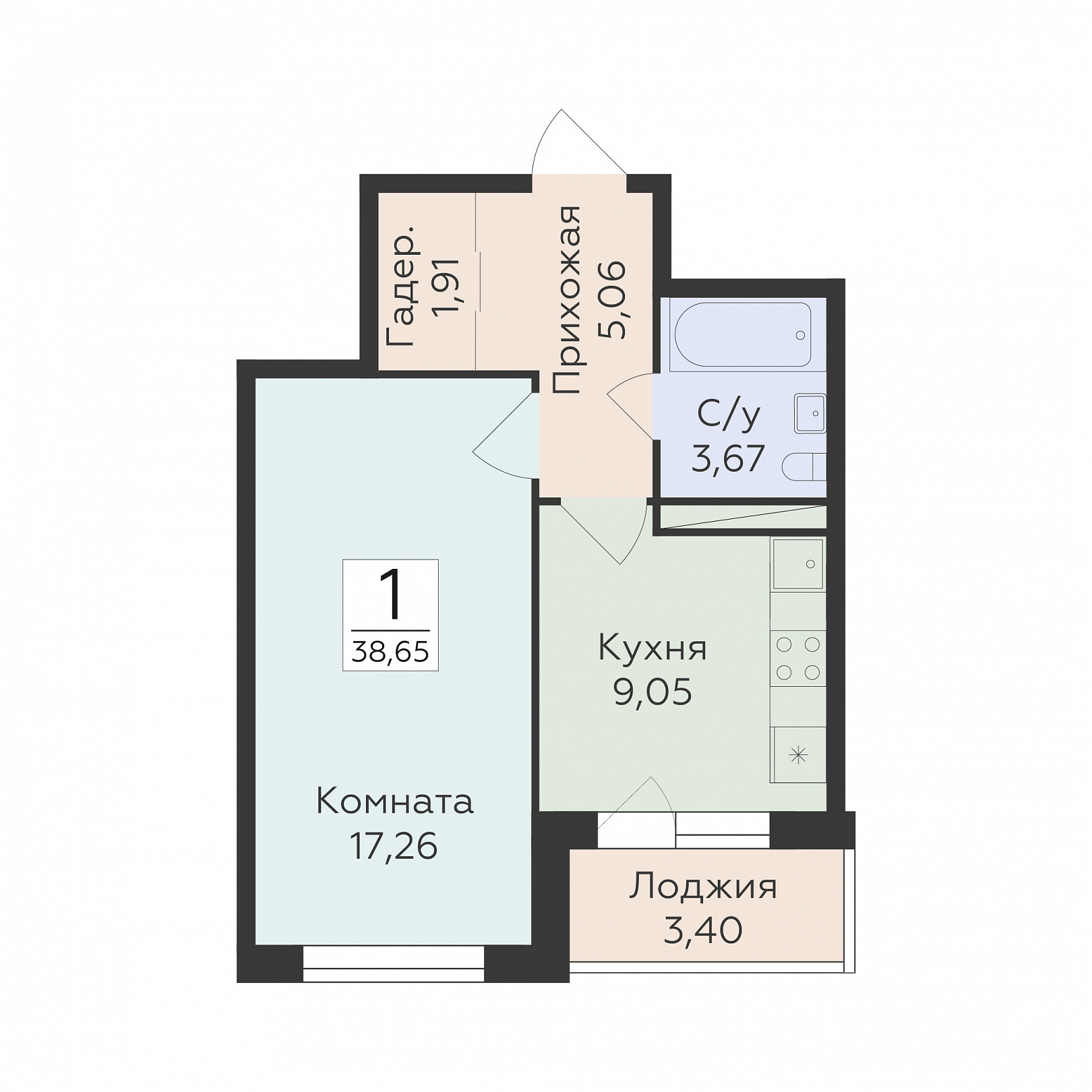 1-комнатная квартира, 38.65 м2, 4 этаж, №241, Авиапарк