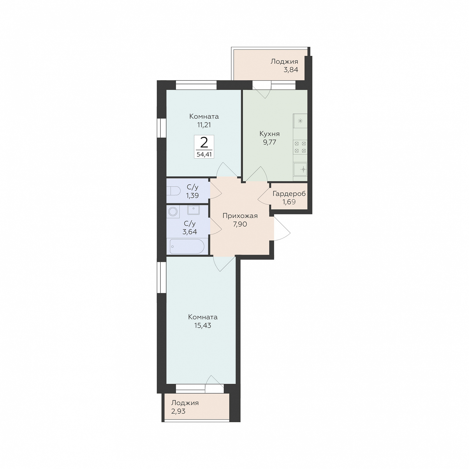 2-комнатная квартира, 54.41 м2, 7 этаж, №356, Flora