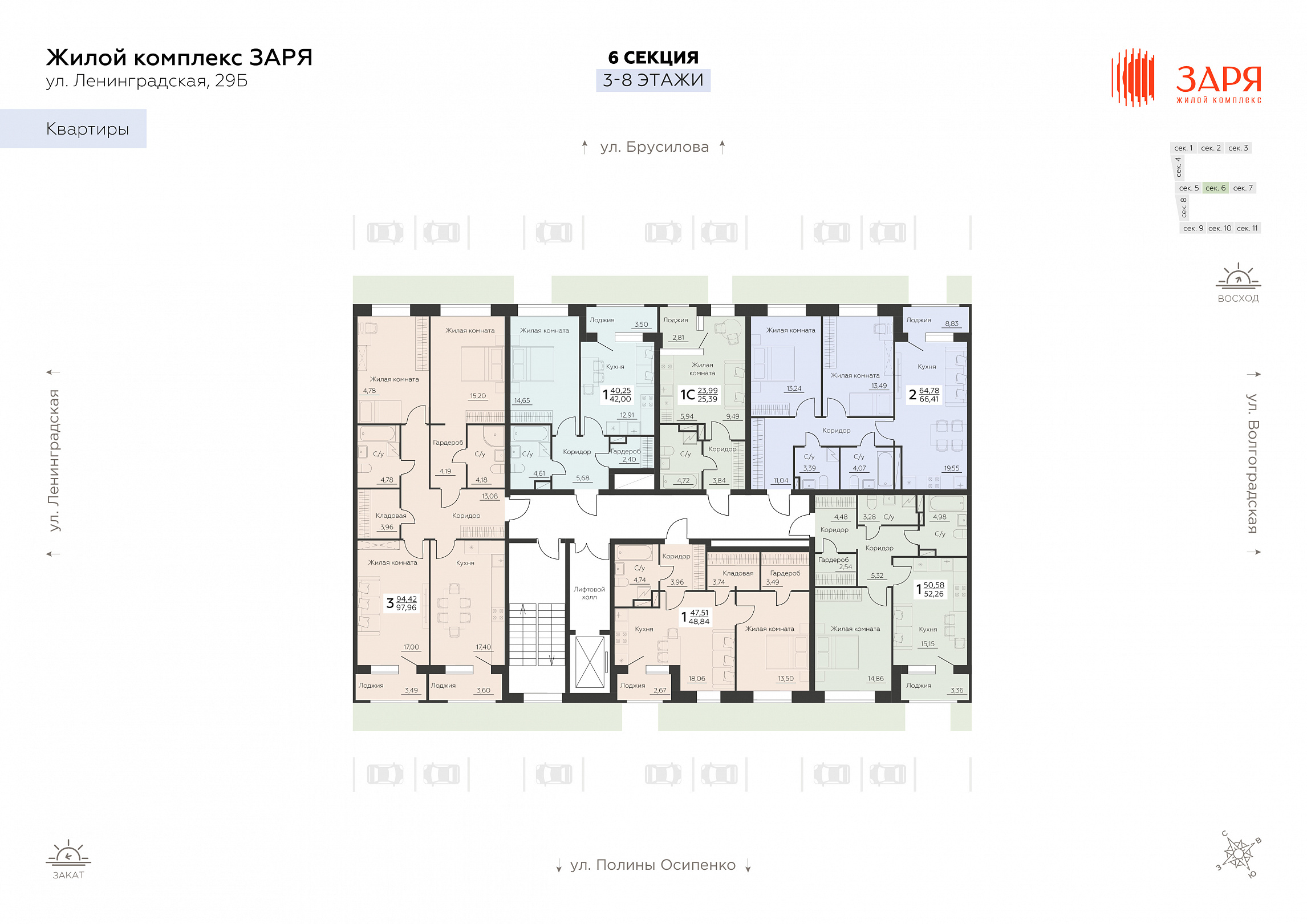 1-комнатная квартира, 48.84 м2, 3 этаж, №520, Заря