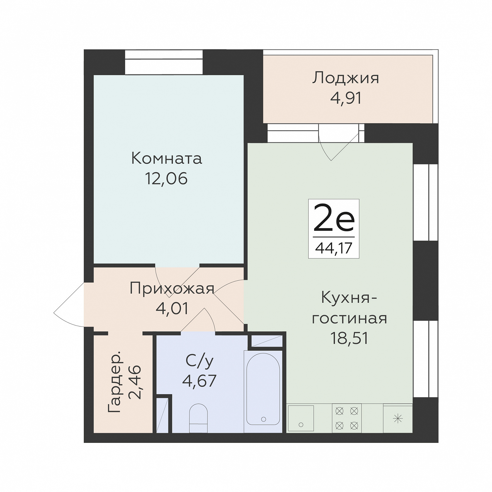 2-ком. квартира (Евро), 44.17 м2, 4 этаж, №337, Суворов сити 2
